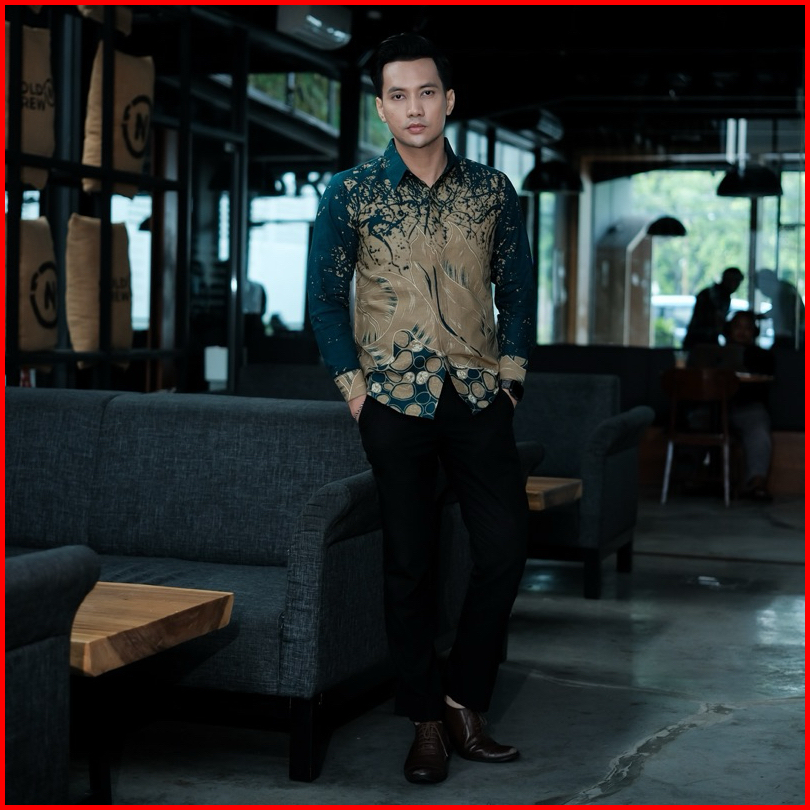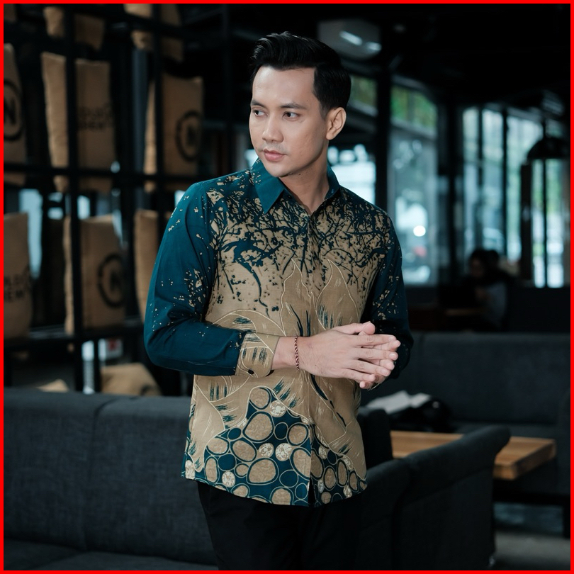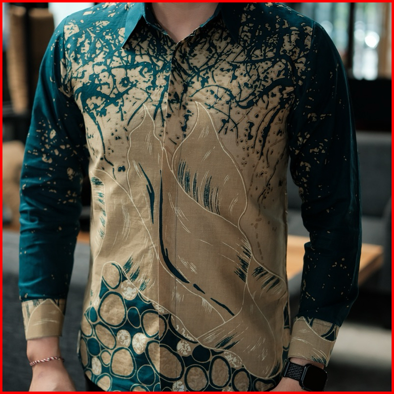 Kusuma Hijau Kemeja Batik Pria Lengan Panjang Furing Full Katun Slimfit