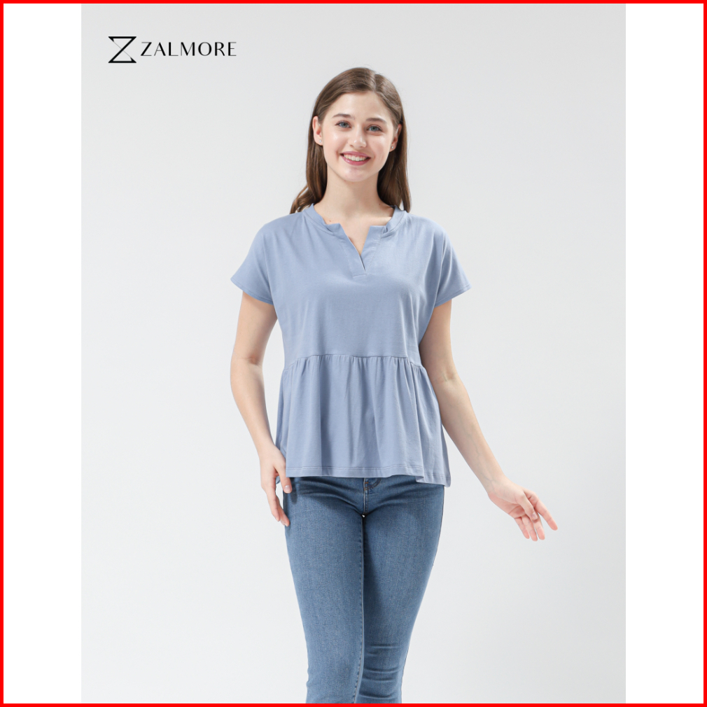 Zalmore Vneck Loose Peplum Top Premium Cotton - Atasan Wanita