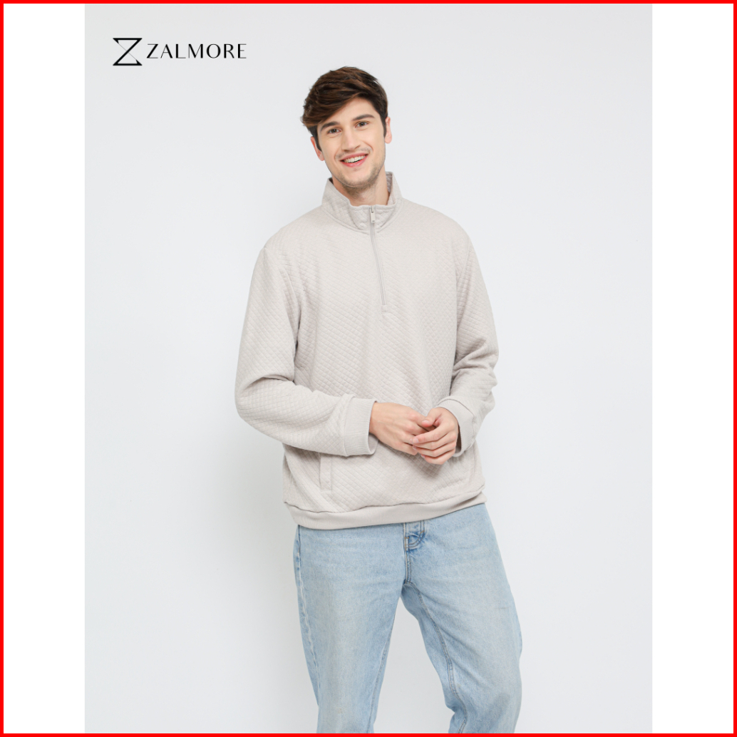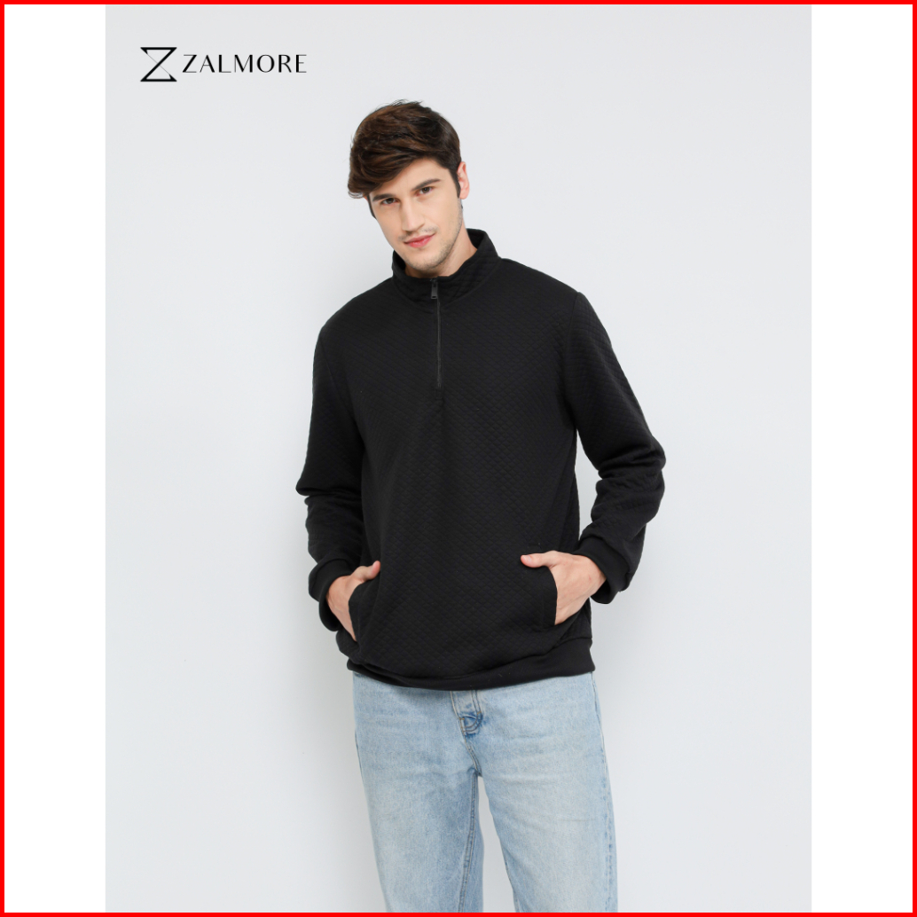 Zalmore Stand Up Collar Men Sweatshirt Embossed Cotton - Sweater Pria