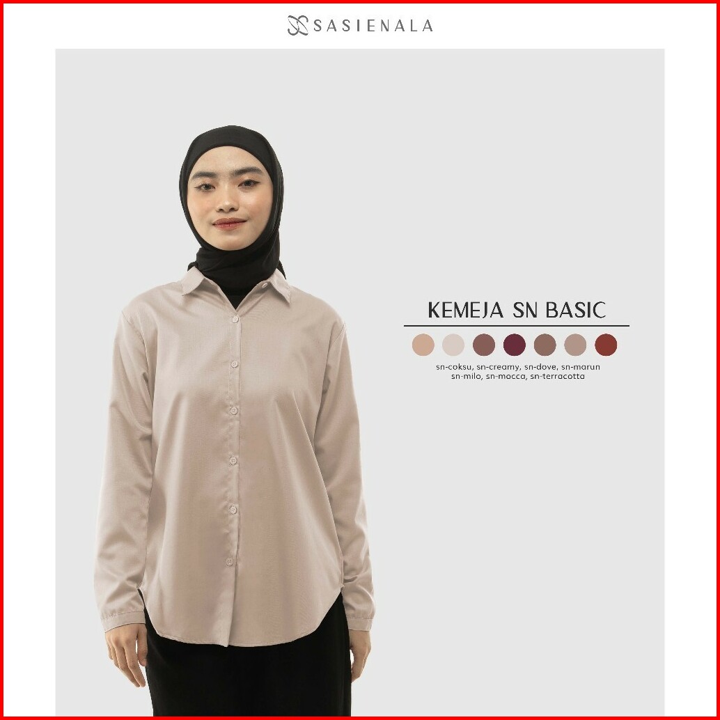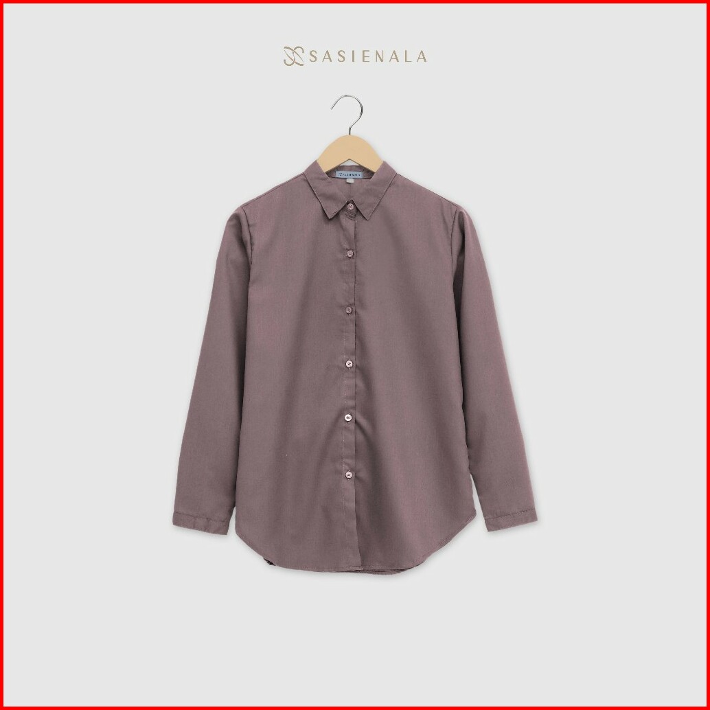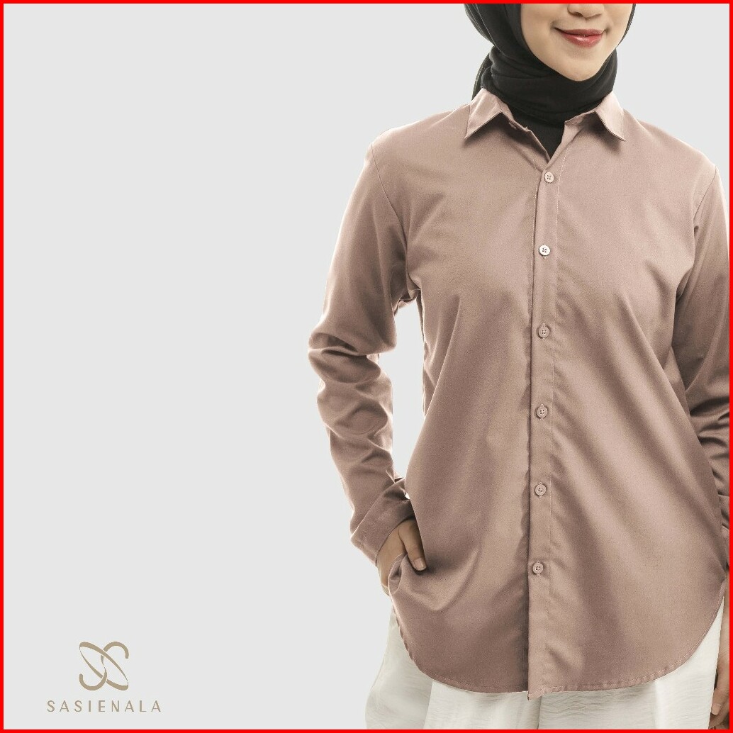 Sasienala Sn Basic Shirt Coklat Series Kemeja Lengan Panjang Kemeja Wanita Kemeja Kerja