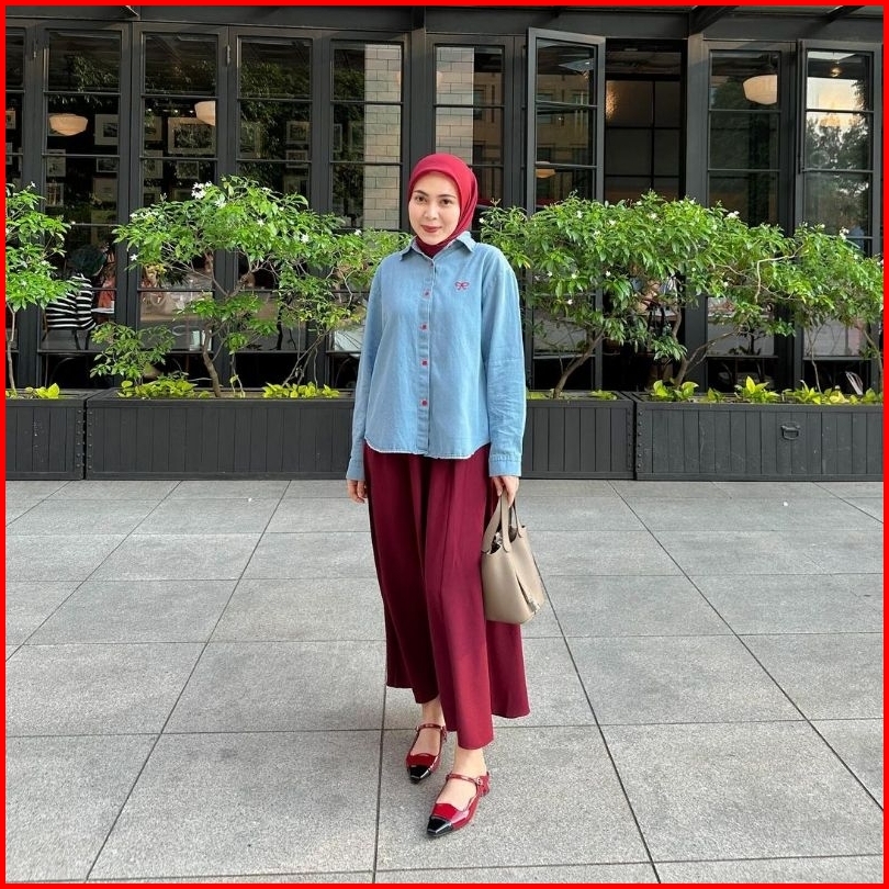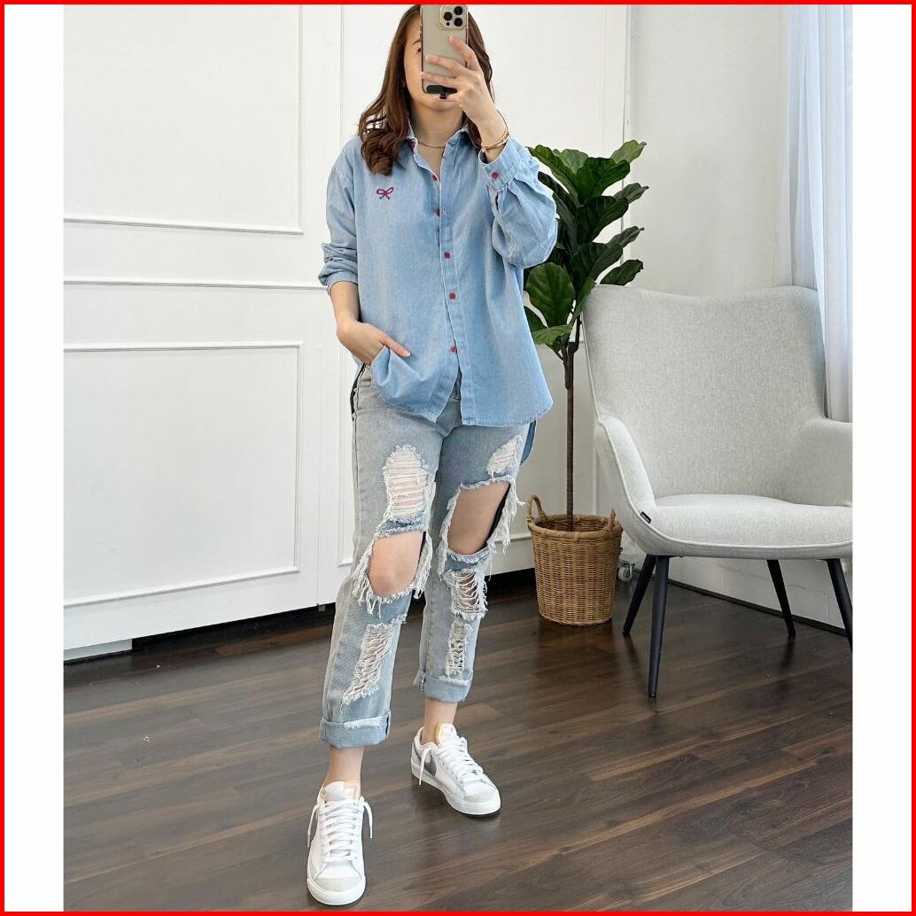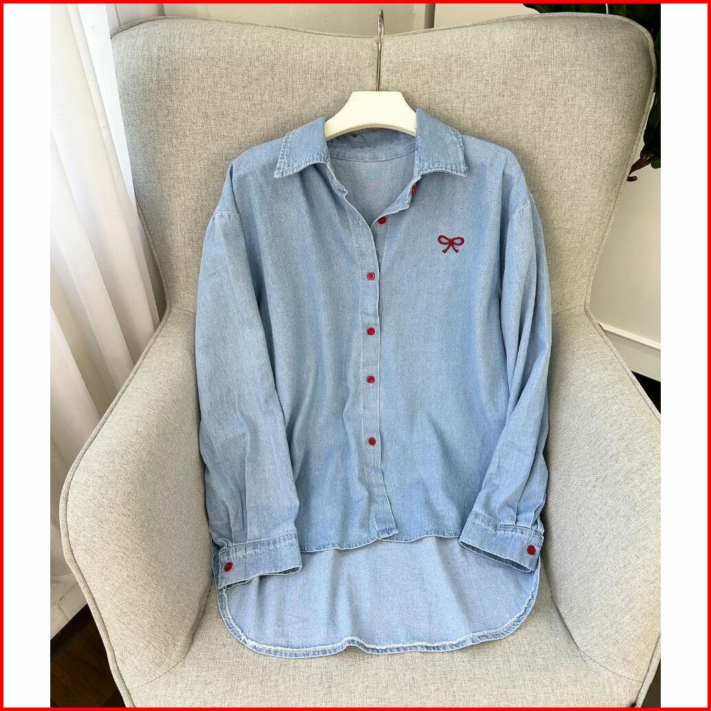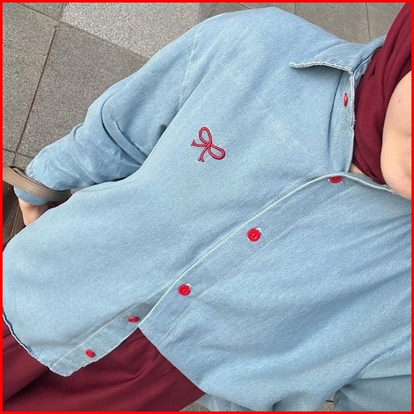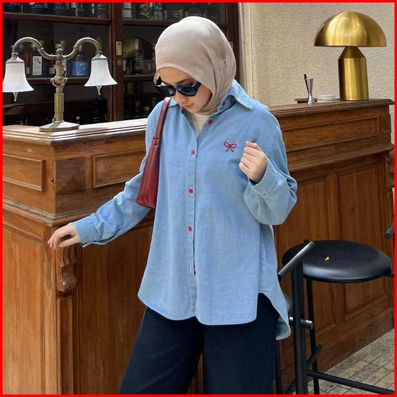 Kemeja Jeans Pita Kemeja Wanita Ribbon Kemeja Jeans Motif Model Terbaru