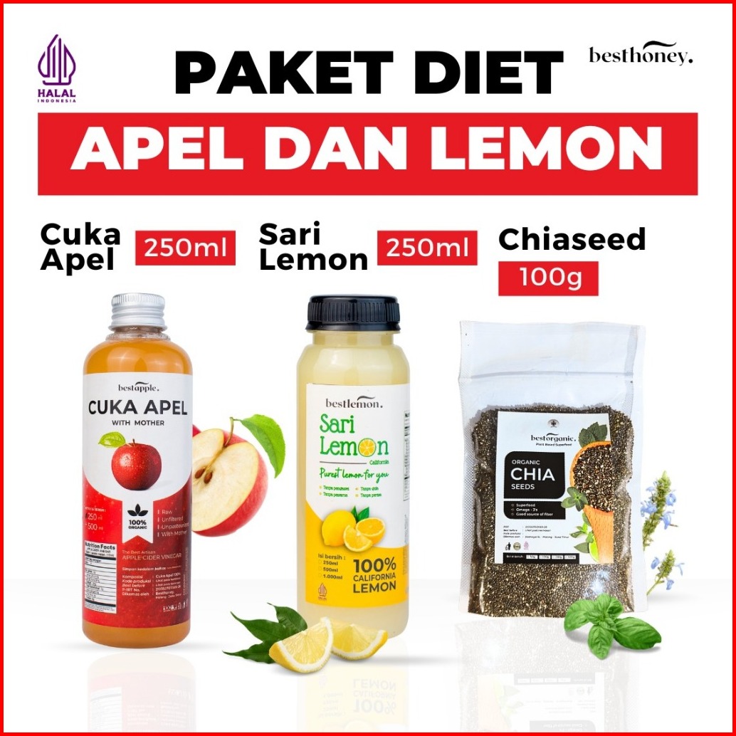 Besthoney - Paket Imunitas - Paket Diet Paket Detox - Cuka Apel - Chia Seed - Sari Lemon - 250 Ml