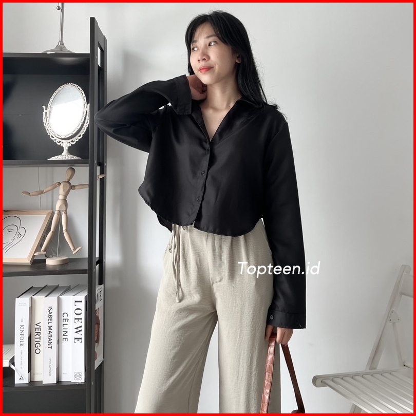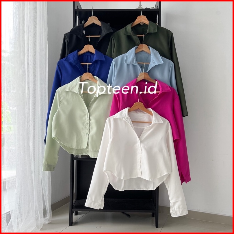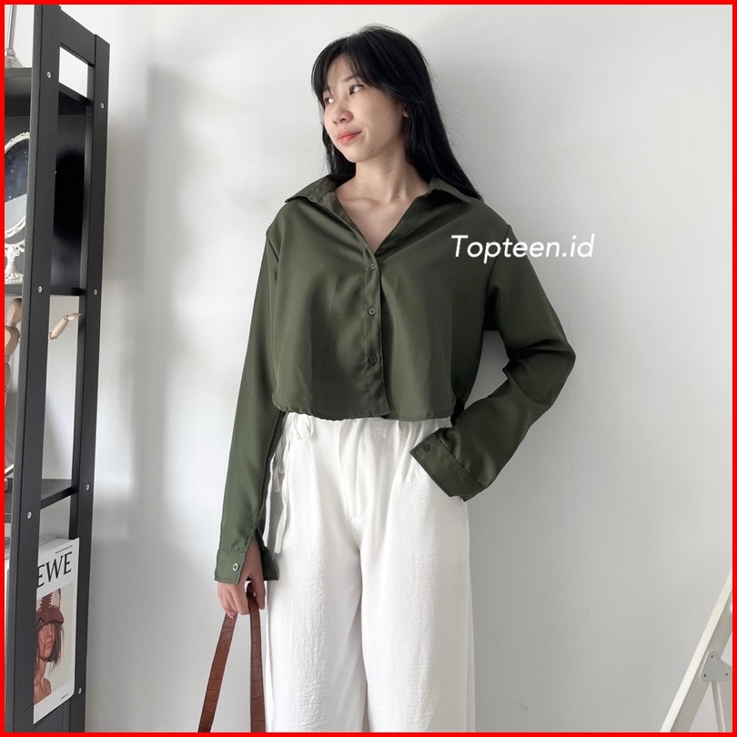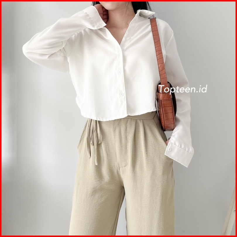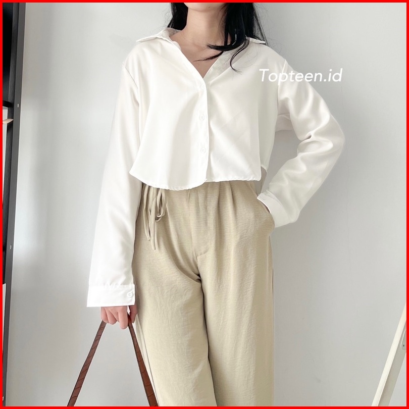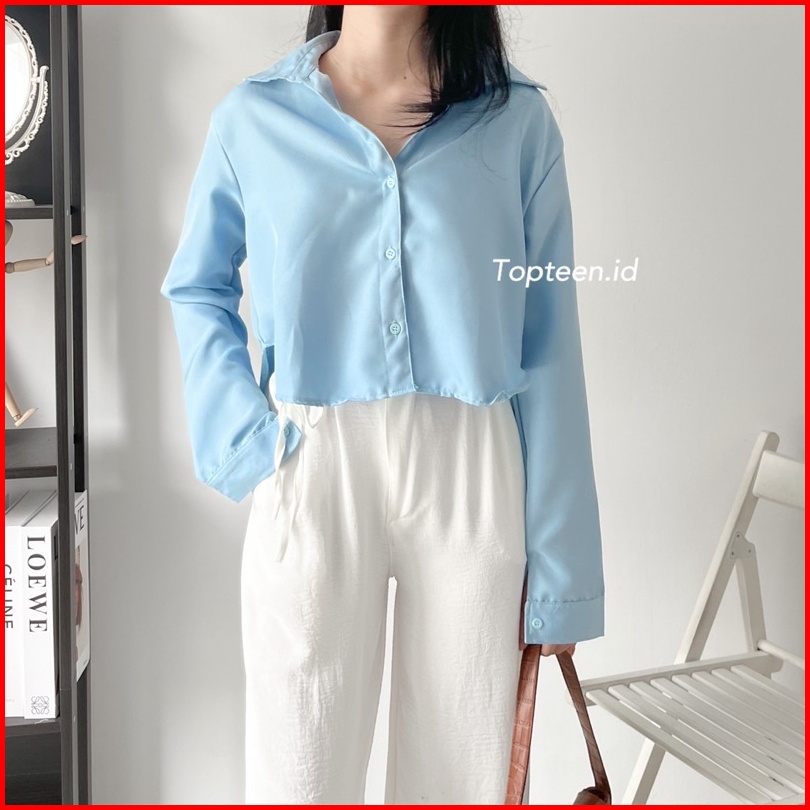 Topteen - Lexa Long Crop Kemeja Wanita Casual Kerja