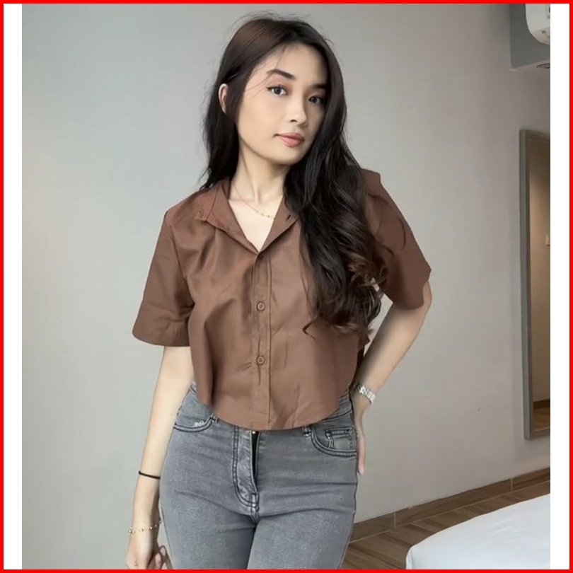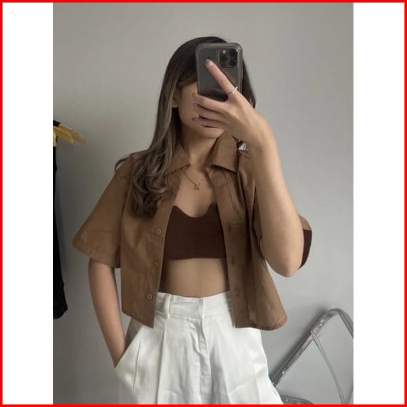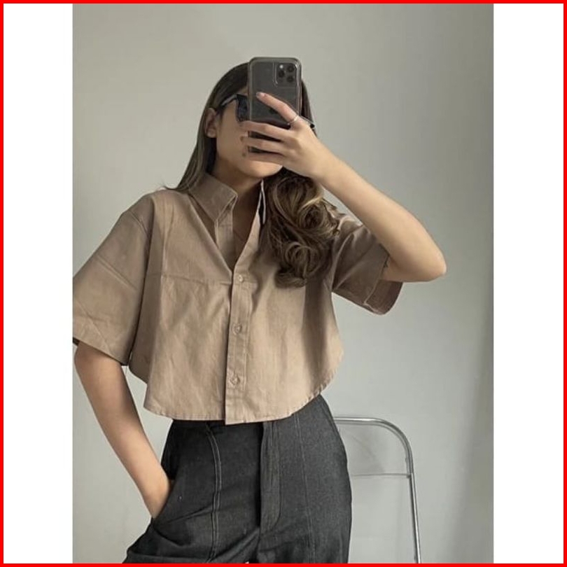 Jolie Crop Tshirt - Atasan Wanita Kemeja Crop Top Katun Linen