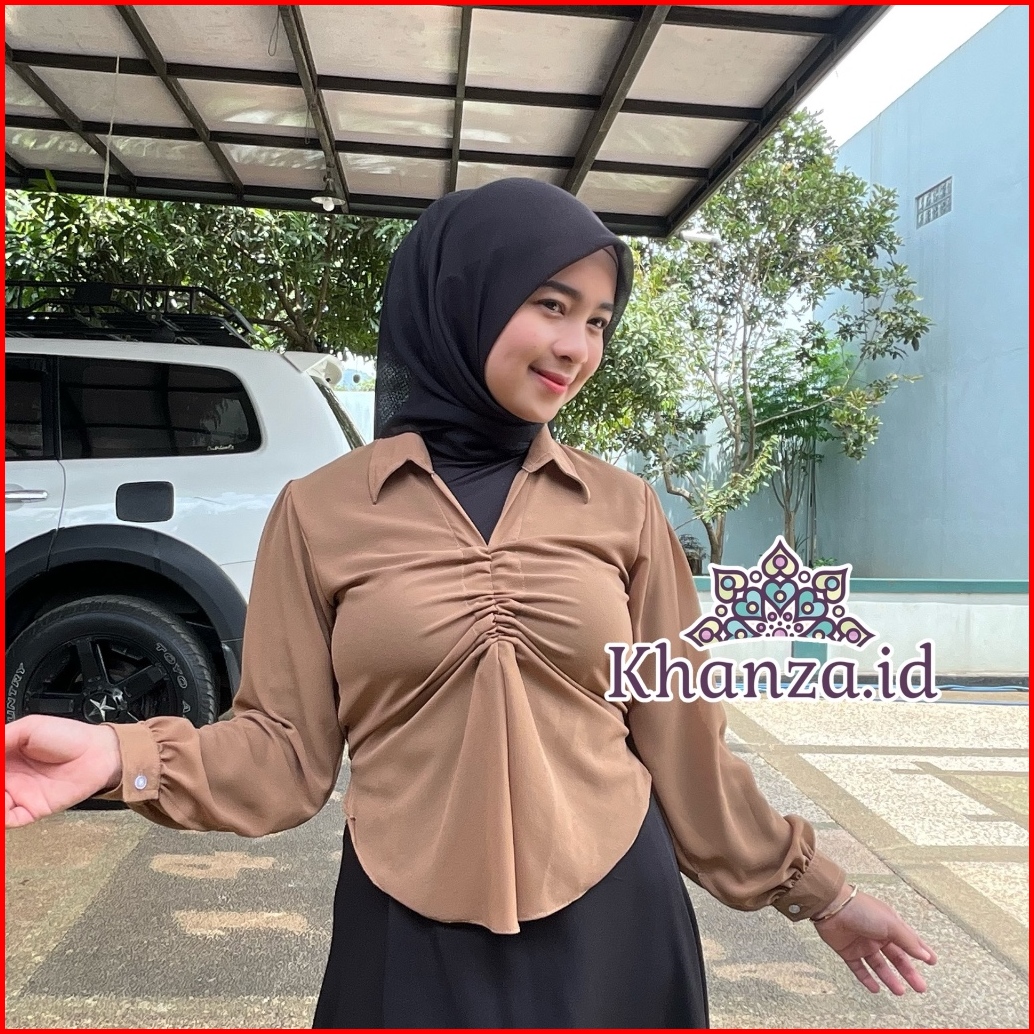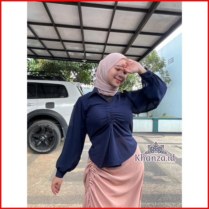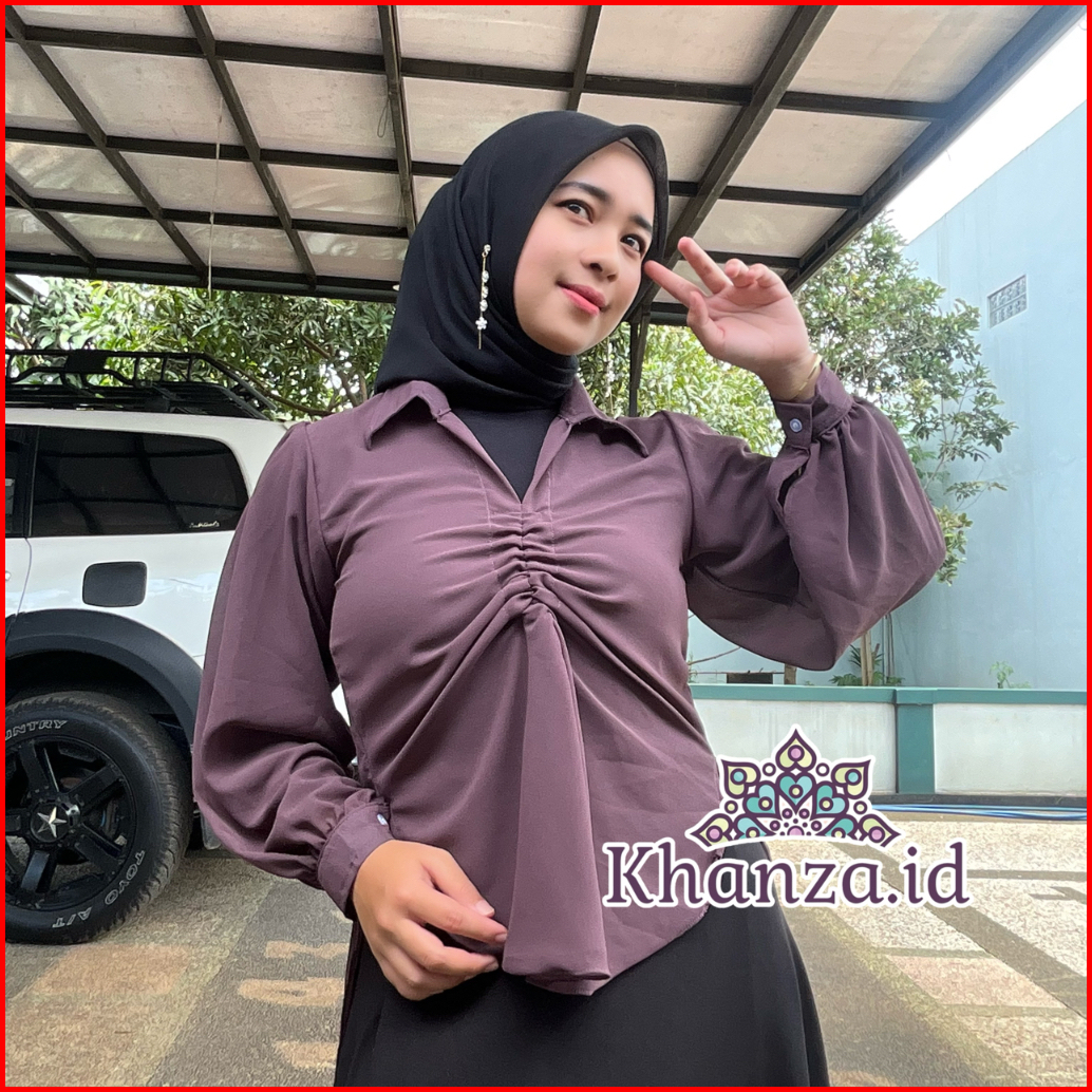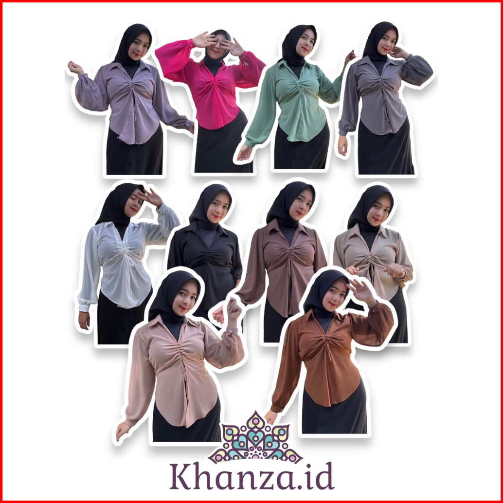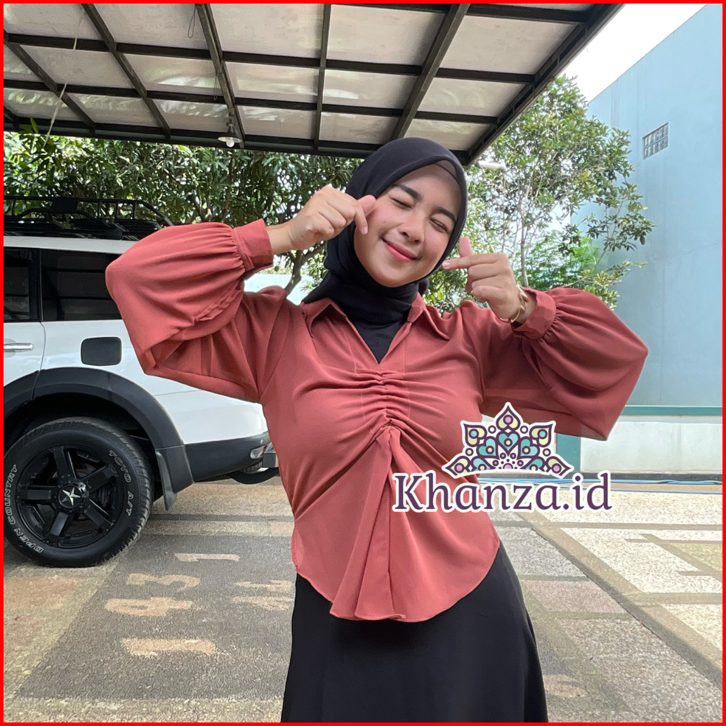 Khanza Blouse Wanita Atasan Wanita Kemeja Serut Lengan Balon
