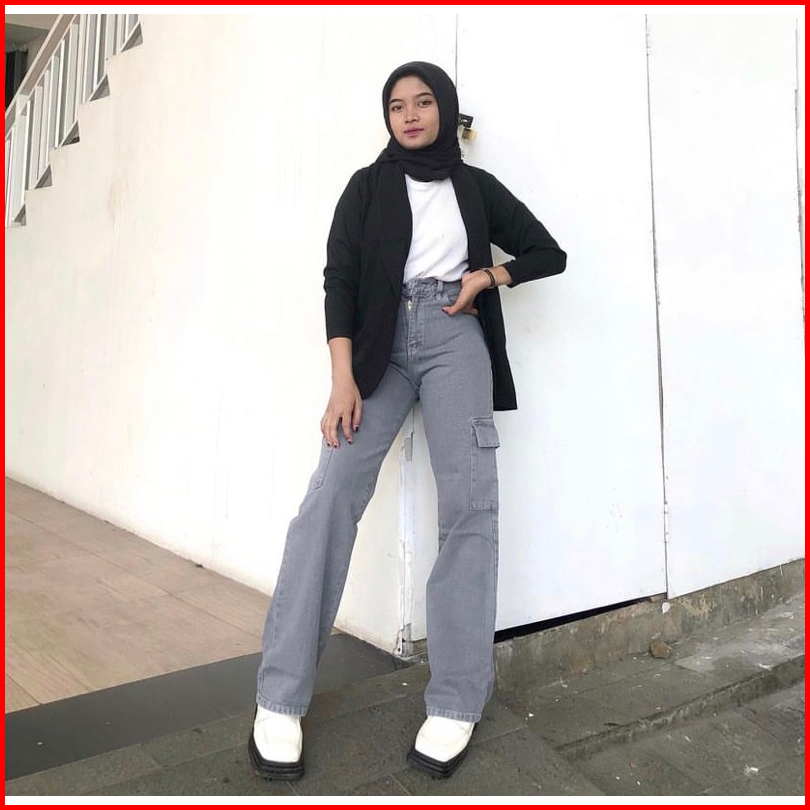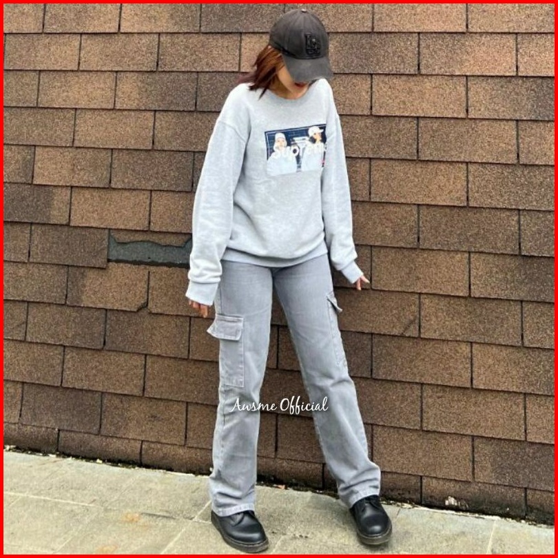 Awsme - Cargo Jeans Grey Highwaist Loose Cargo Jeans