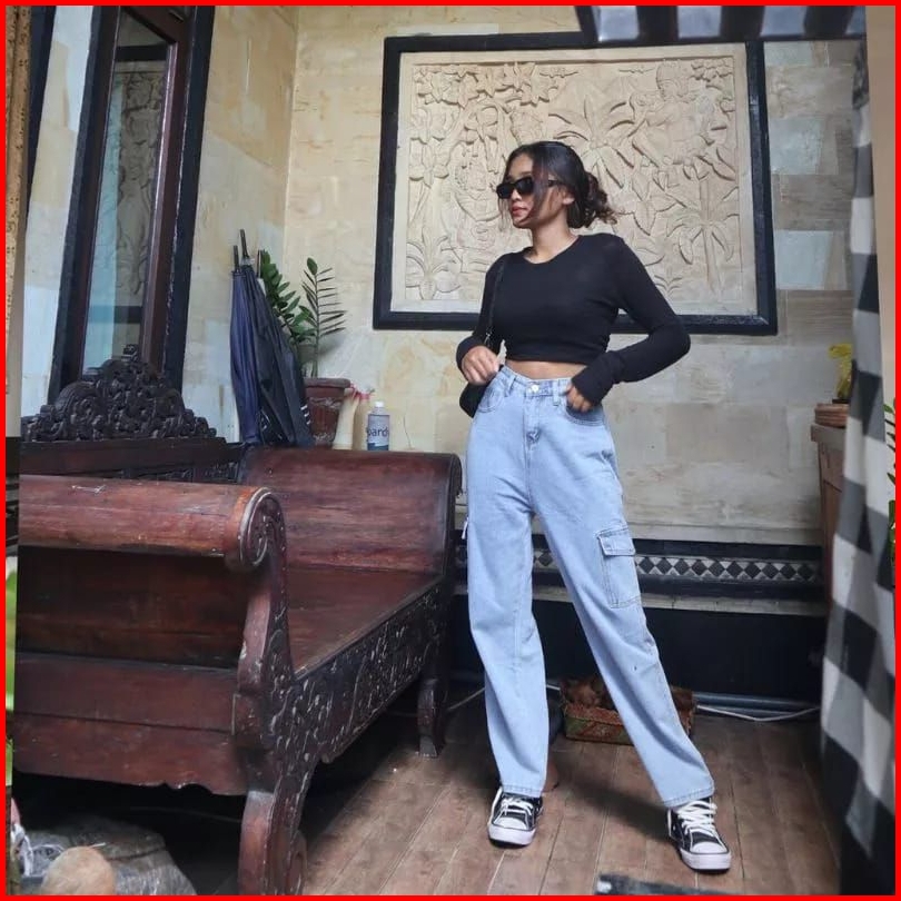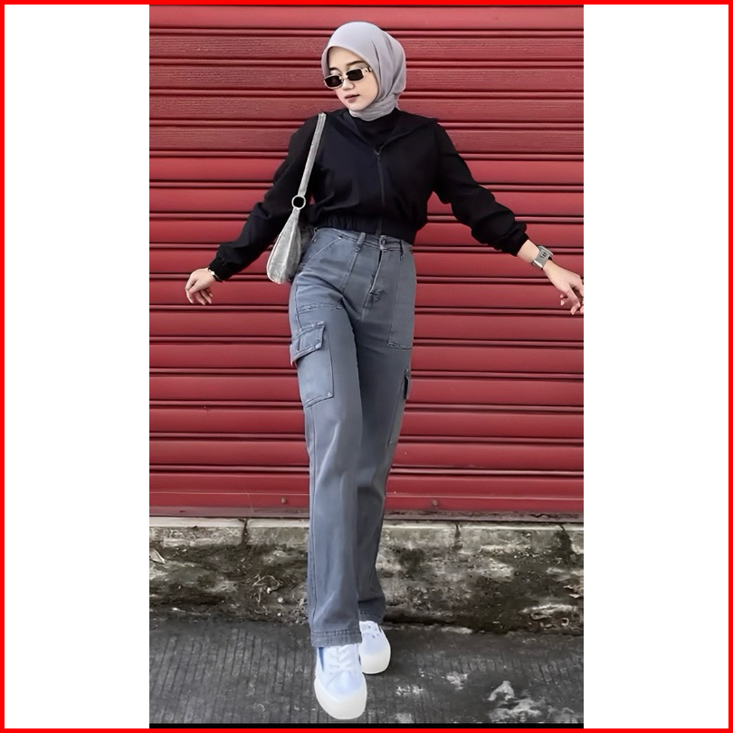 Celana Cargo Jeans Highwaist Baggy Jeans Celana Panjang Cargo