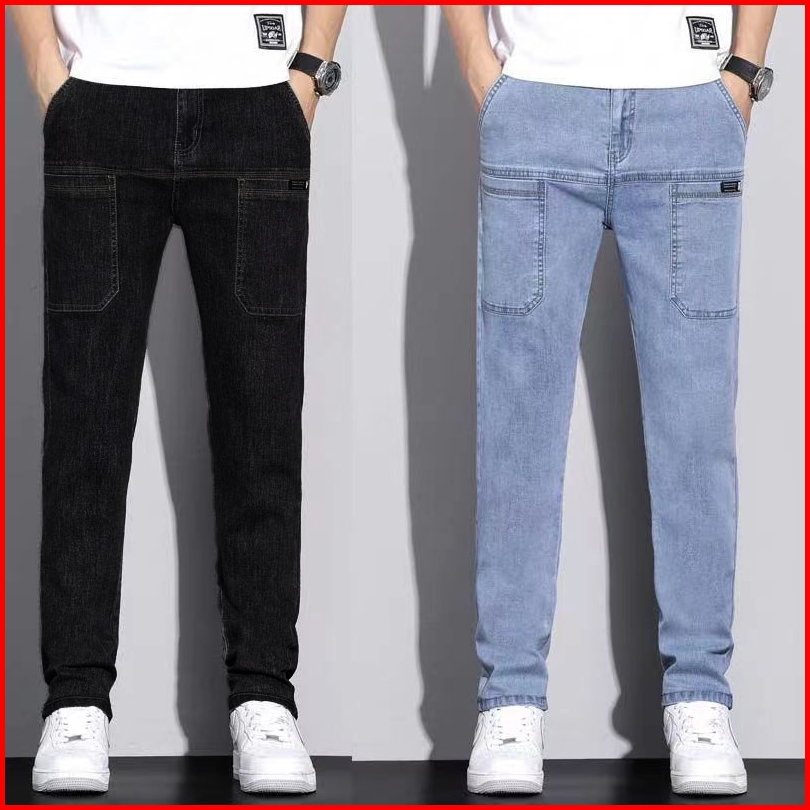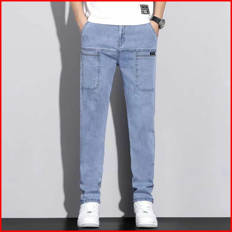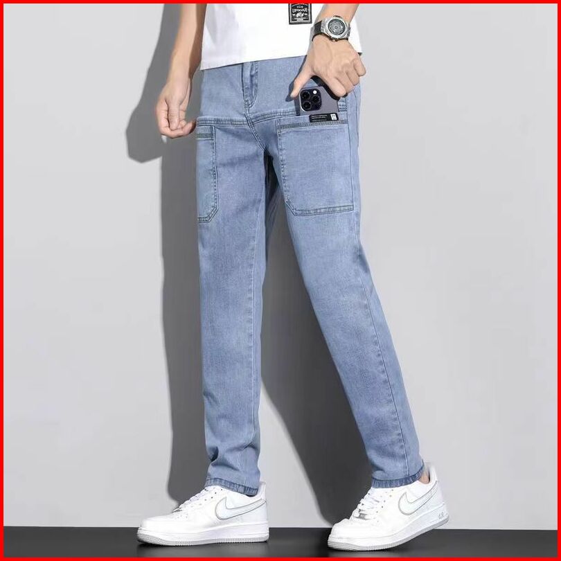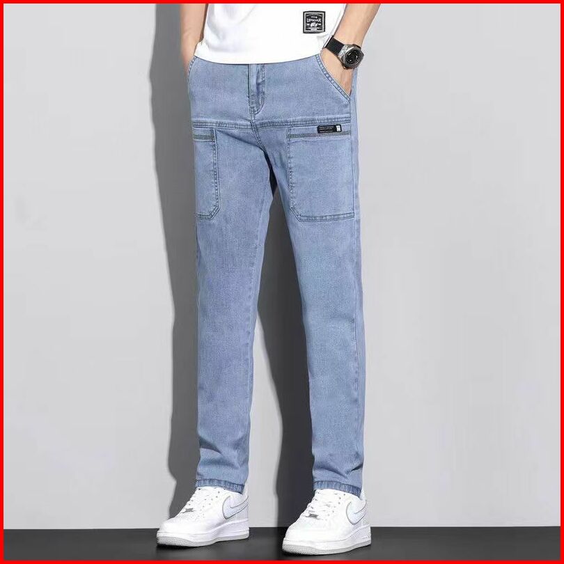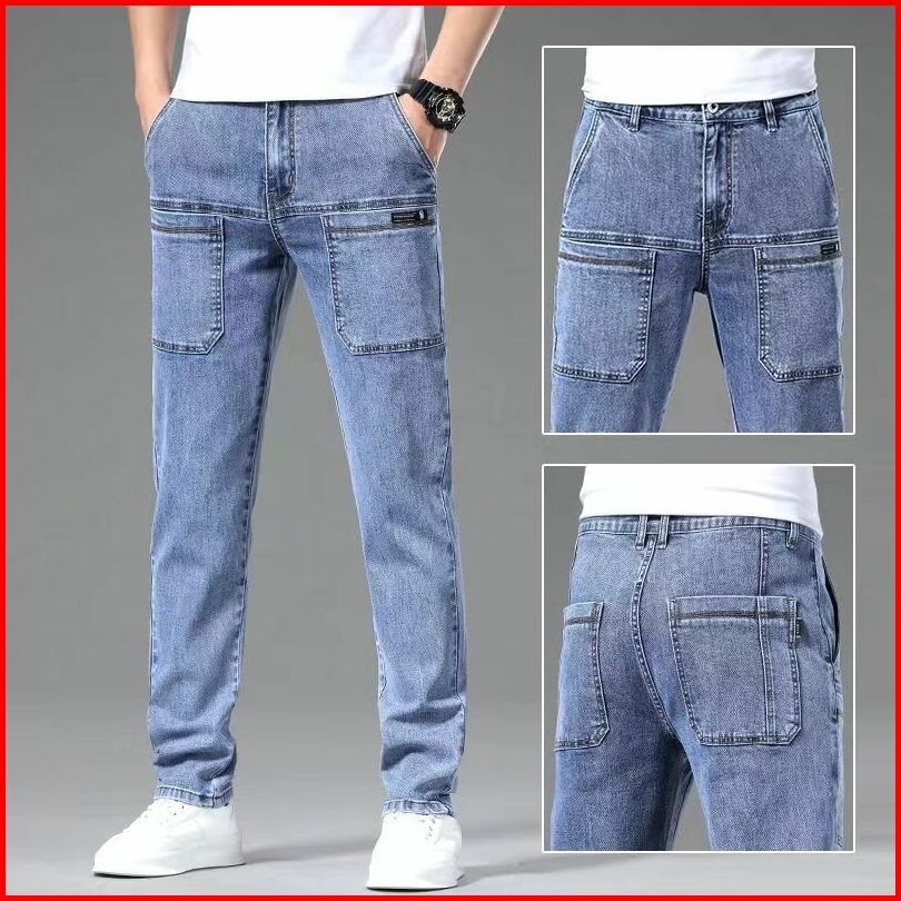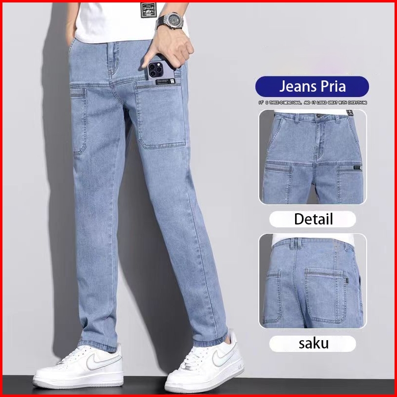 Celana Cargo Panjang Pria Biru Jeans Slimfit Celana Denim Dewasa Cowok Kargo Casual Korean Style