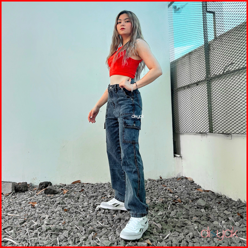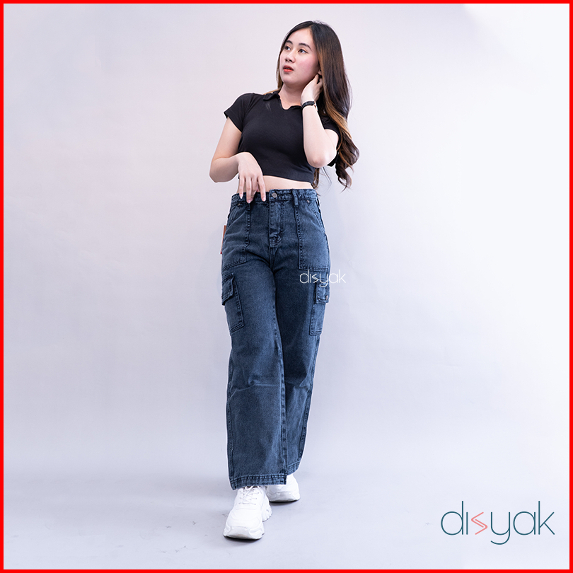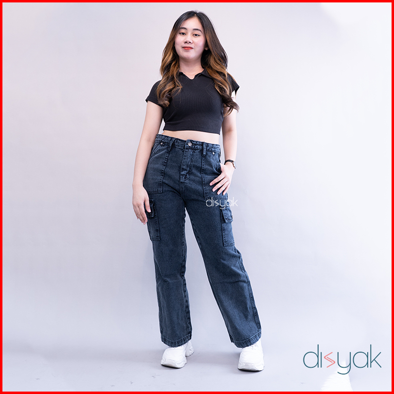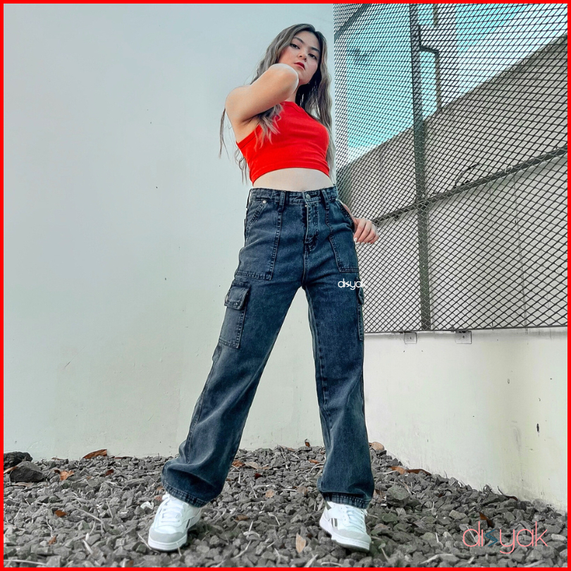 Disyak - Boyfriend Cargo Jeans Black Snow 715-815