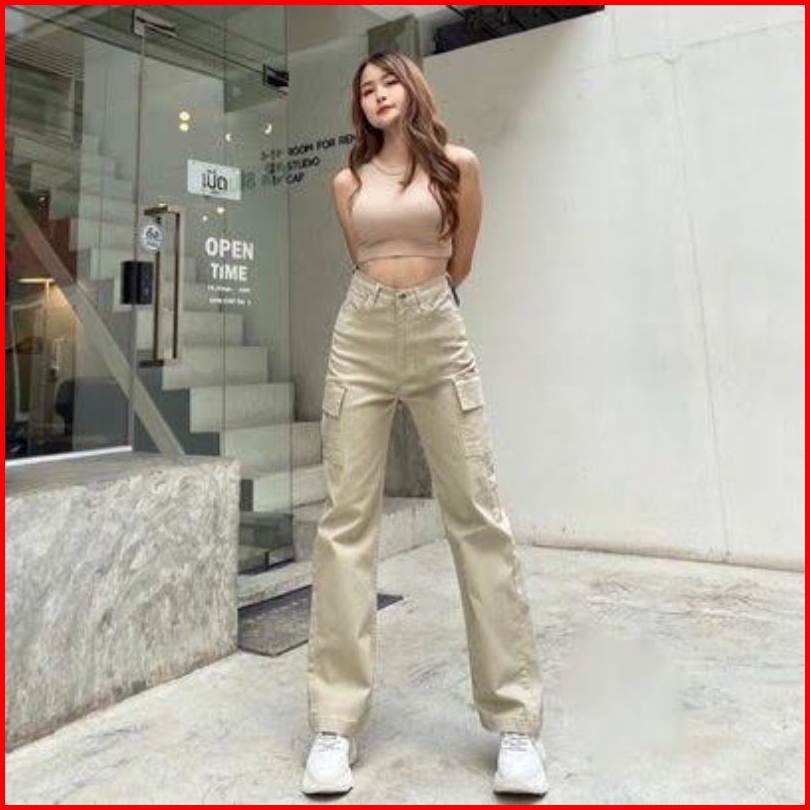 Termurah Celana Jeans Wanita-celana Jeans Cargo Highwaist Loose Wanita Model Korea Terbaru