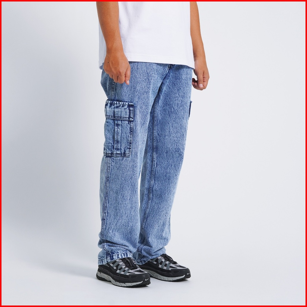 Superego Celana Cargo Jeans Pria Size 35-38 Reguler Loose Fit Long Pants Denim Light Blue Scpdw01b