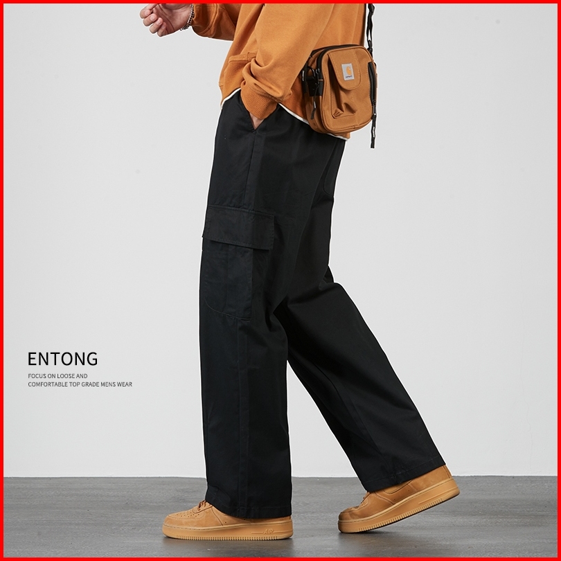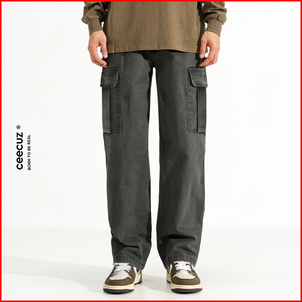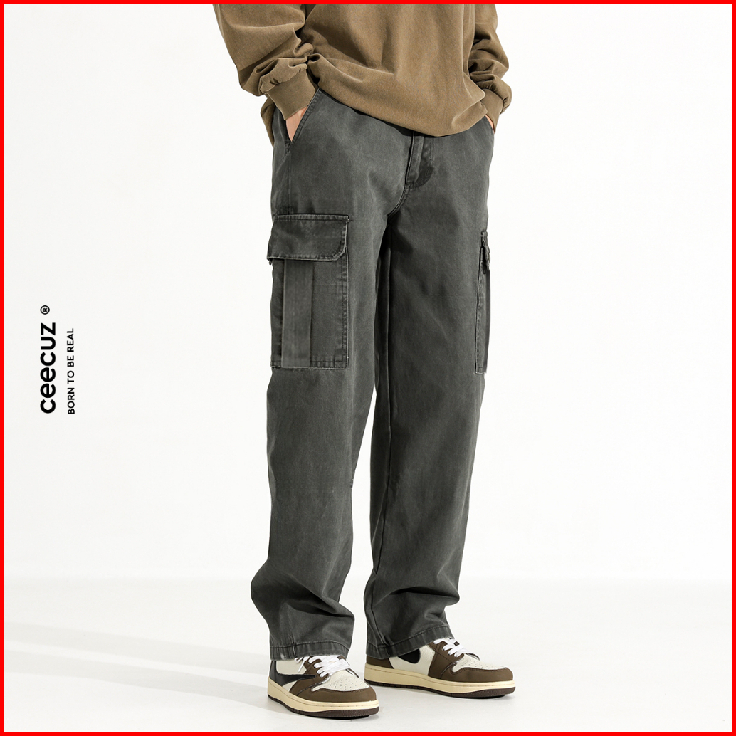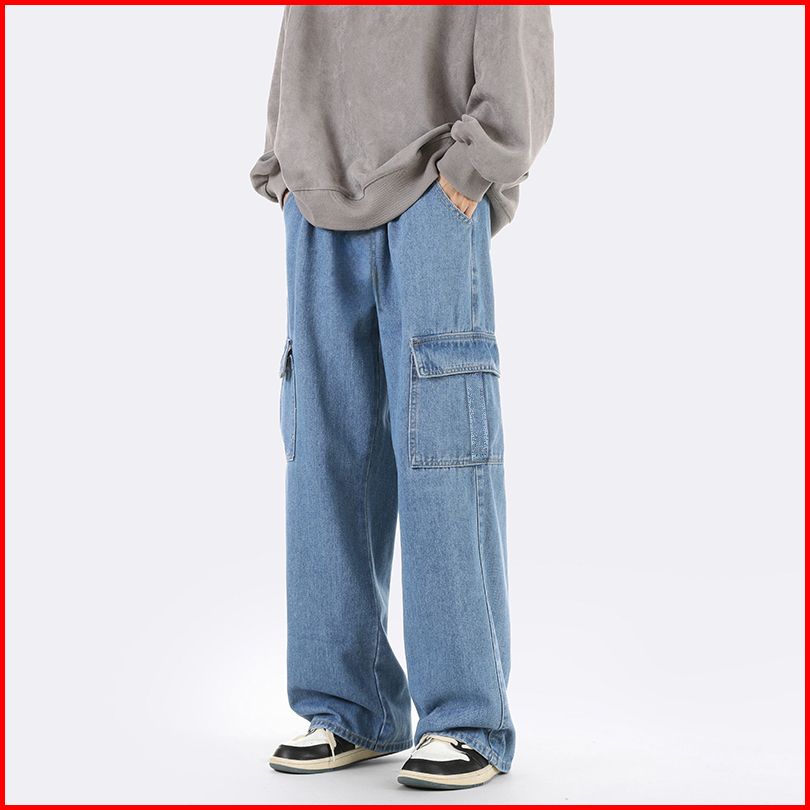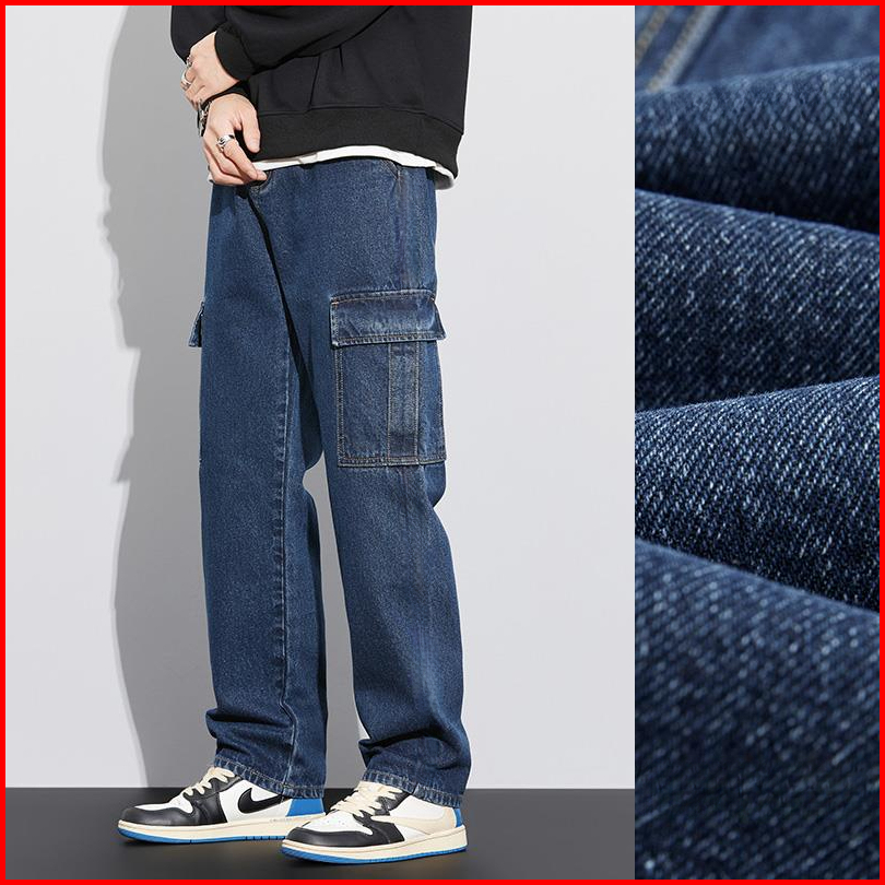 Celana Cargo Baggy Pria Standar Original Hitam Abu Denim Korean Style Cargo Jeans Oversize Cowok Loose Cargo Pants Celan