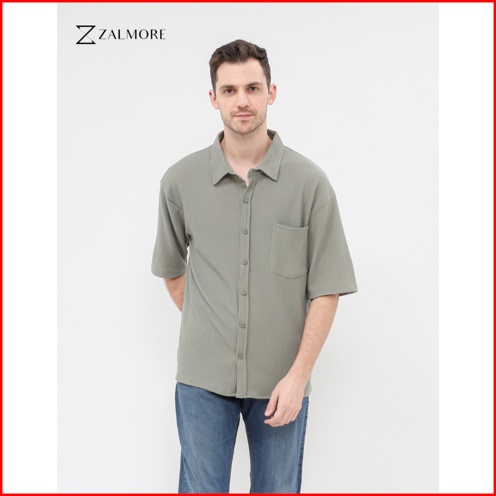 Zalmore Men Oversize Shirt Premium Waffle - Kemeja Oversize Pria