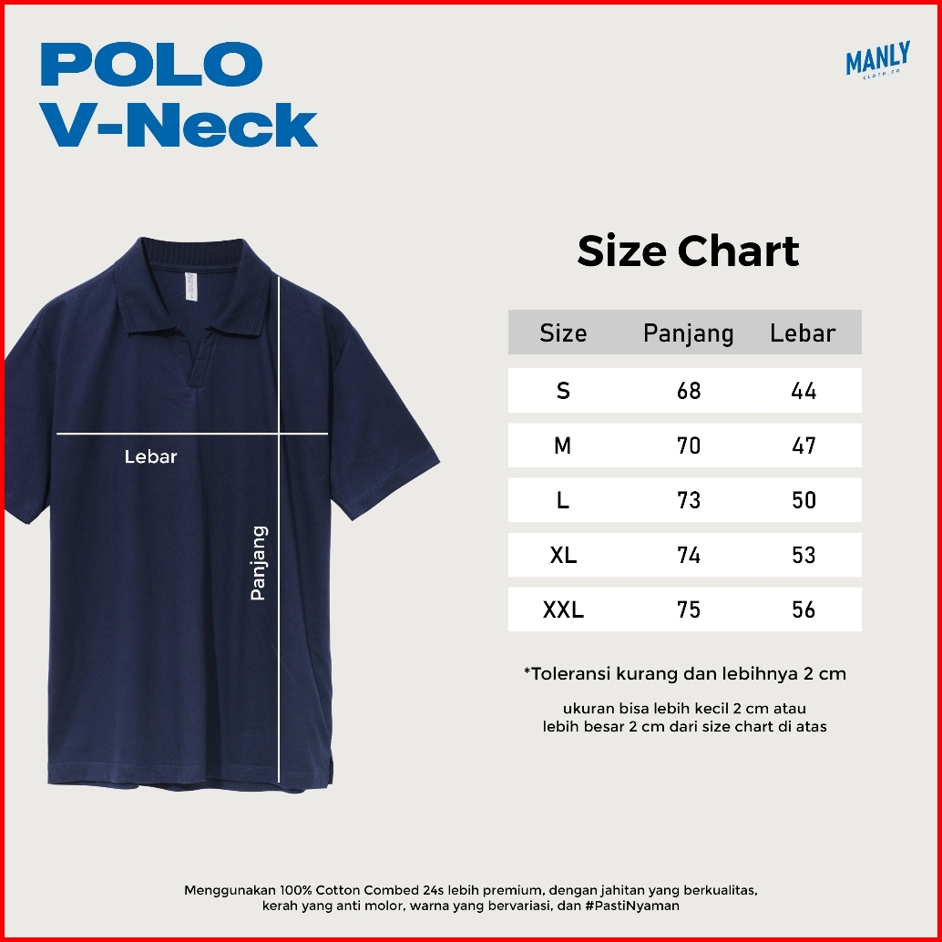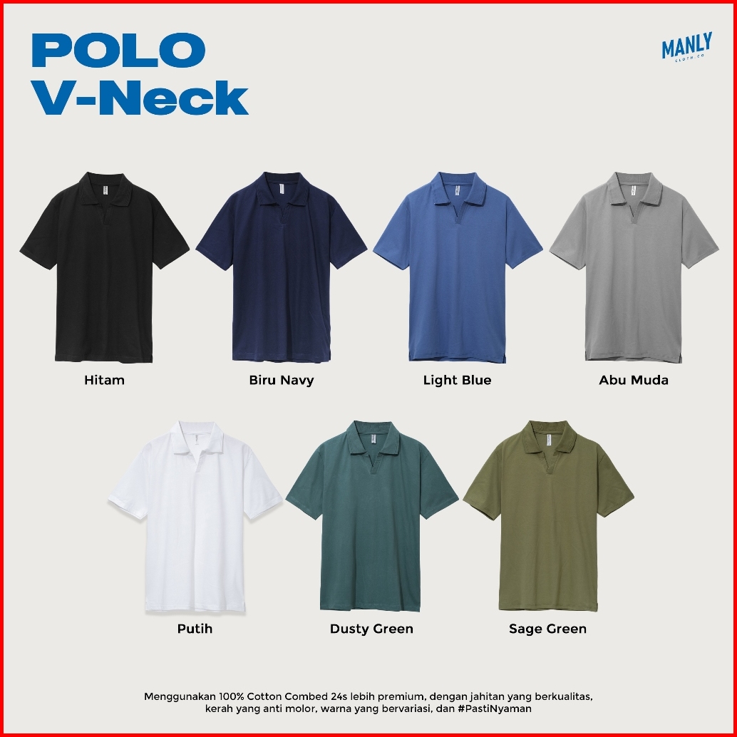 Polo-V. Hitam, Polo-V. Putih, Polo-V. Dongker, Polo-V. DeepBlue, Polo-V. DustyGreen, Polo-V. SageGreen, Polo-V. AbuMuda