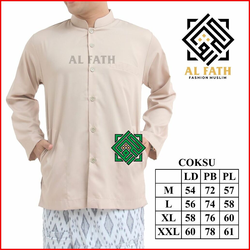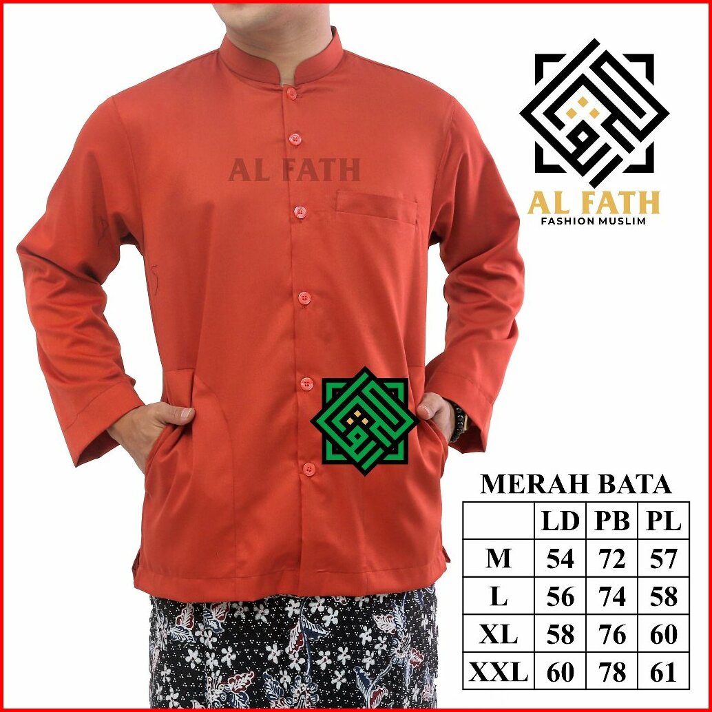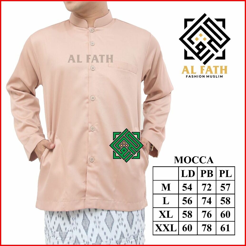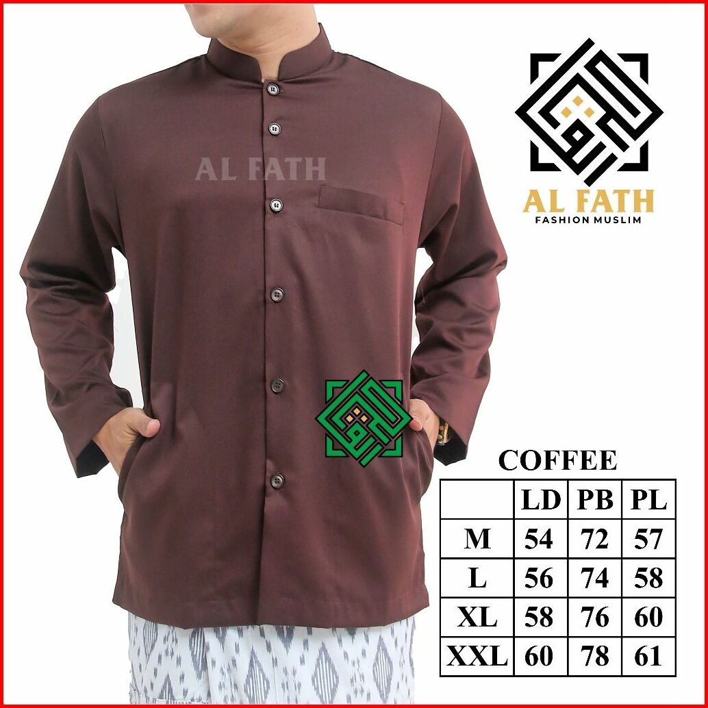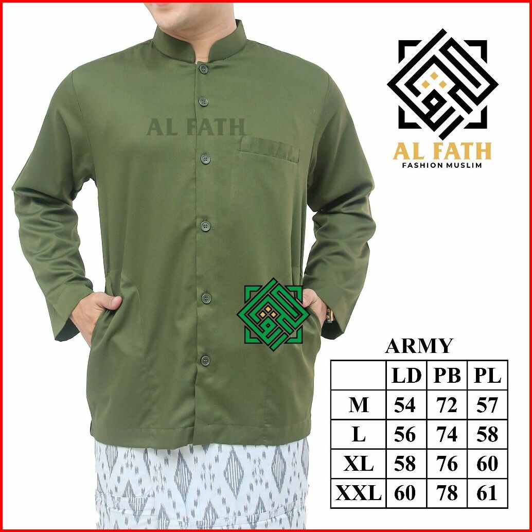 Al Fath Fashion Baju Koko Pria Lengan Panjang Haibah Saku Samping Hijau Sage Polos Dewasa