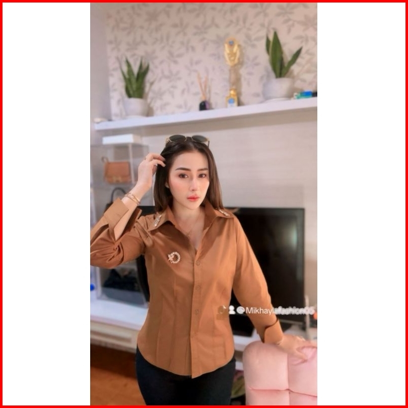 Kemeja Clara Kerah Payet Diamond Lengan Panjang Bodyslim Fashion Wanita