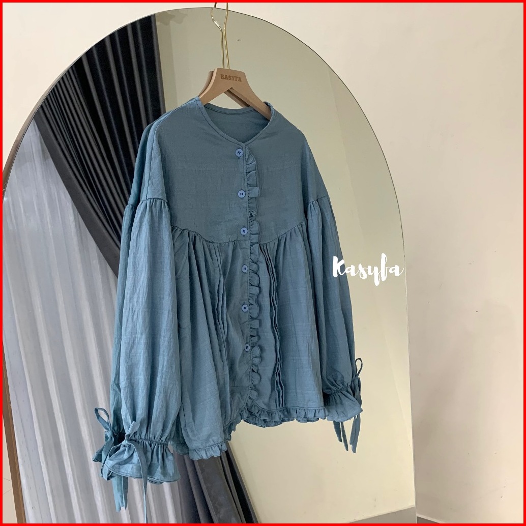 Calaya Kemeja Wanita Rempel Tali Polo Linen
