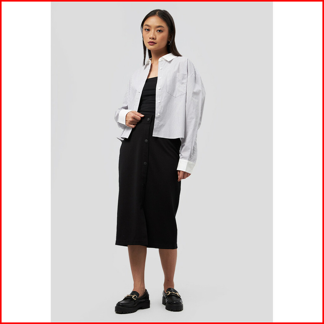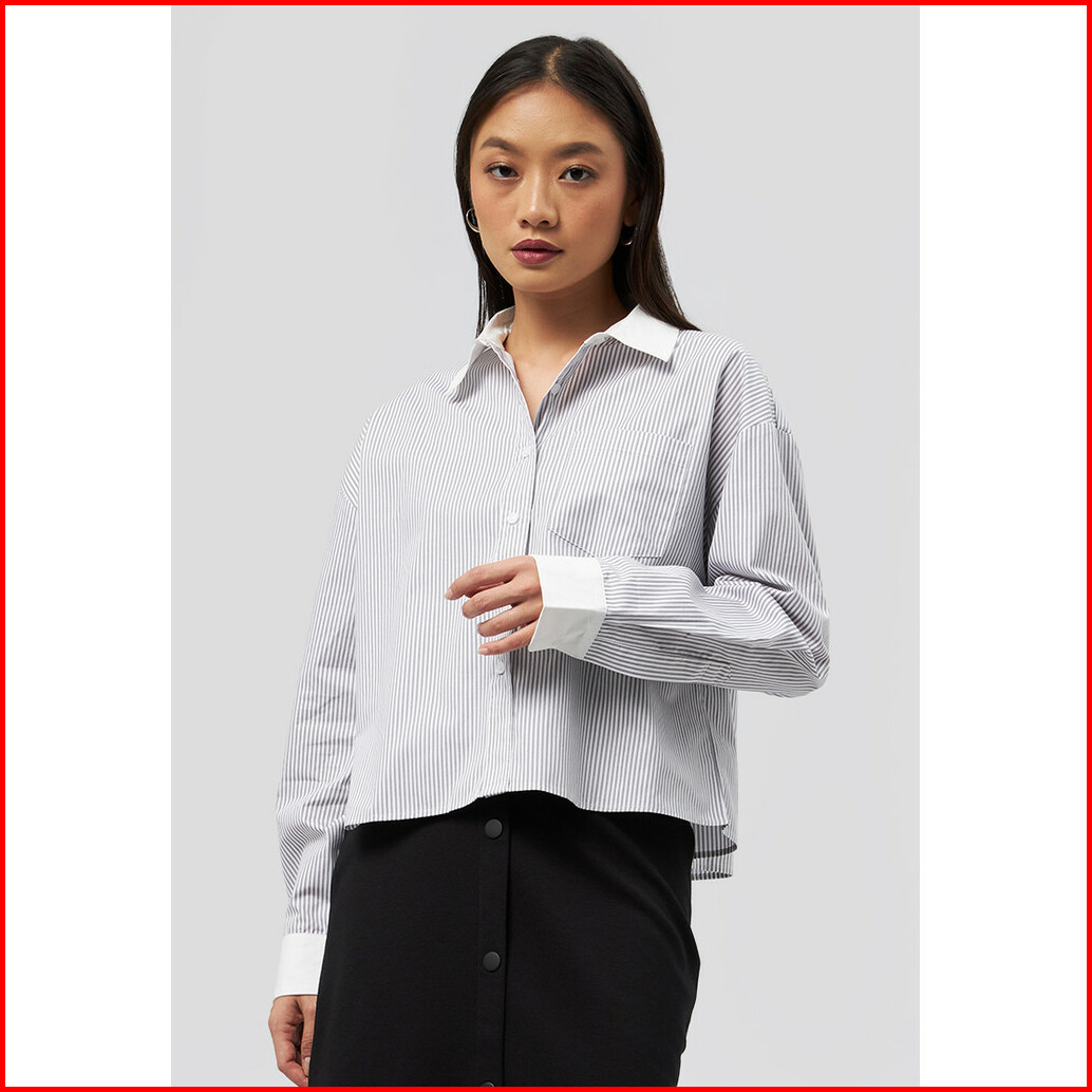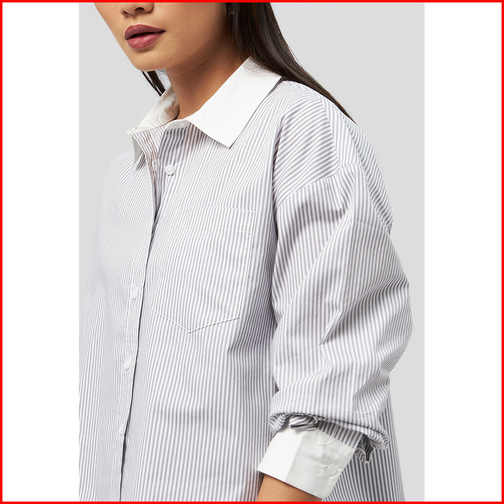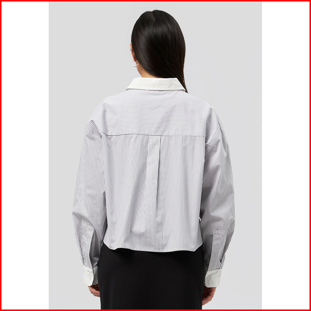 Executive Long Sleeve Stripes Crop Shirt Grey