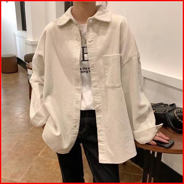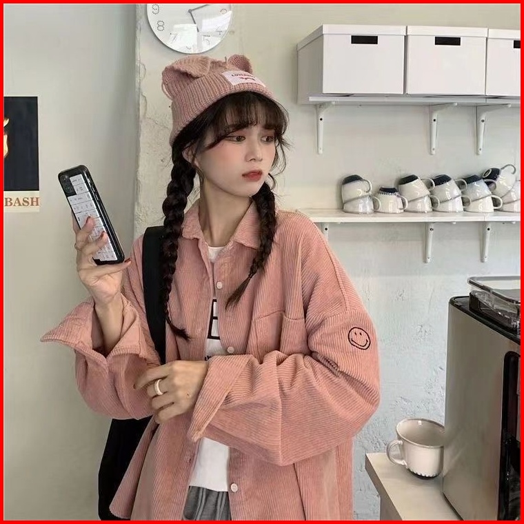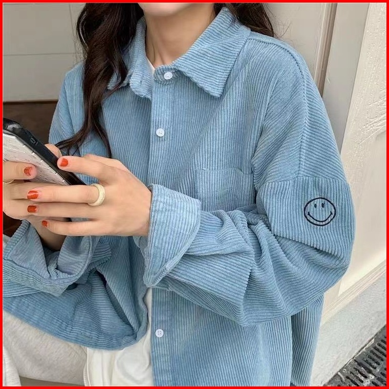 Yuruma Kemeja Korduroi Korea Bordir Smiley Longgar Kemeja Kasual Jaket