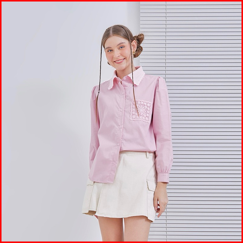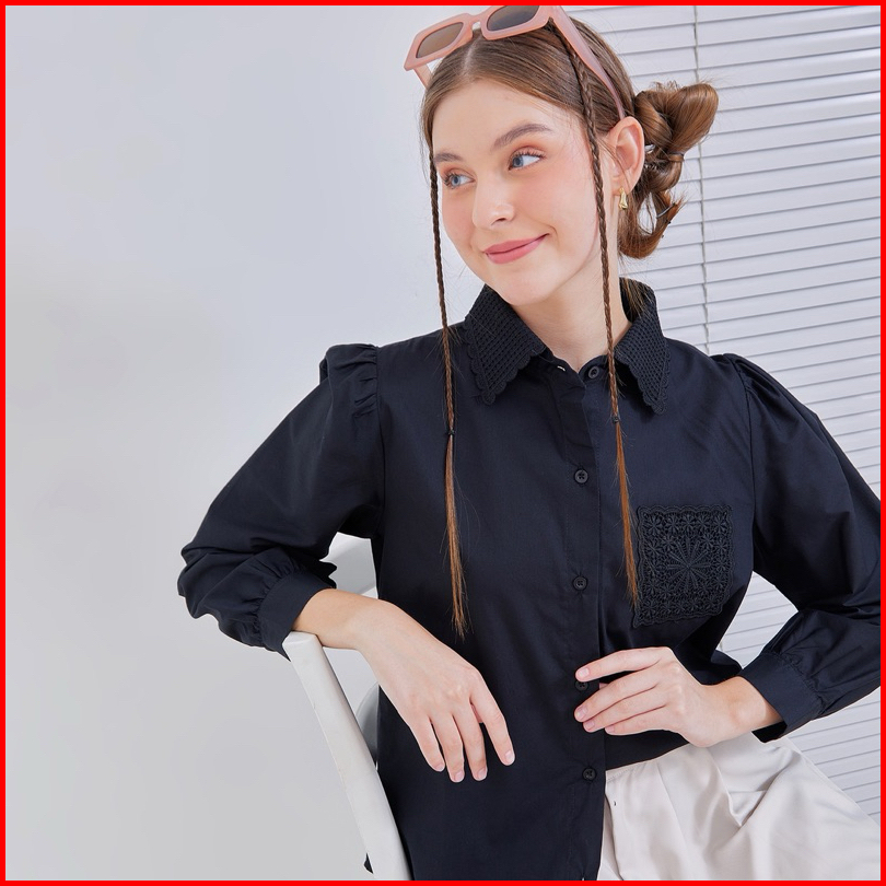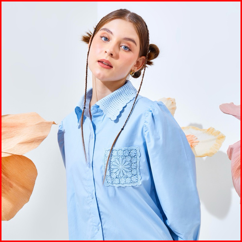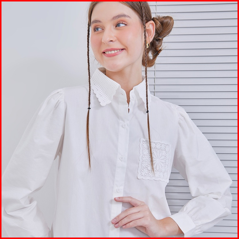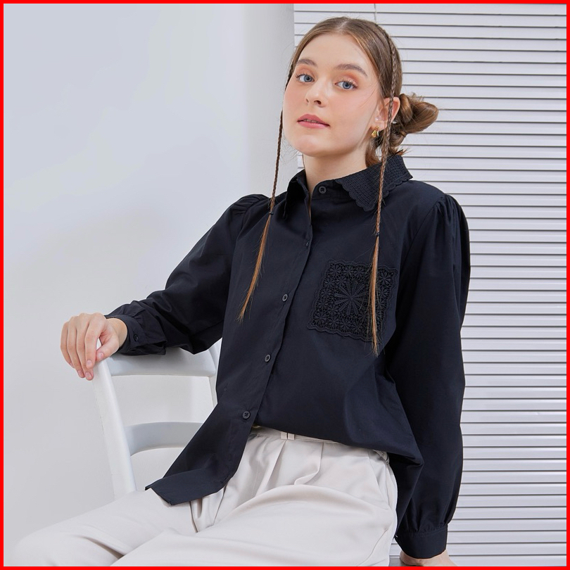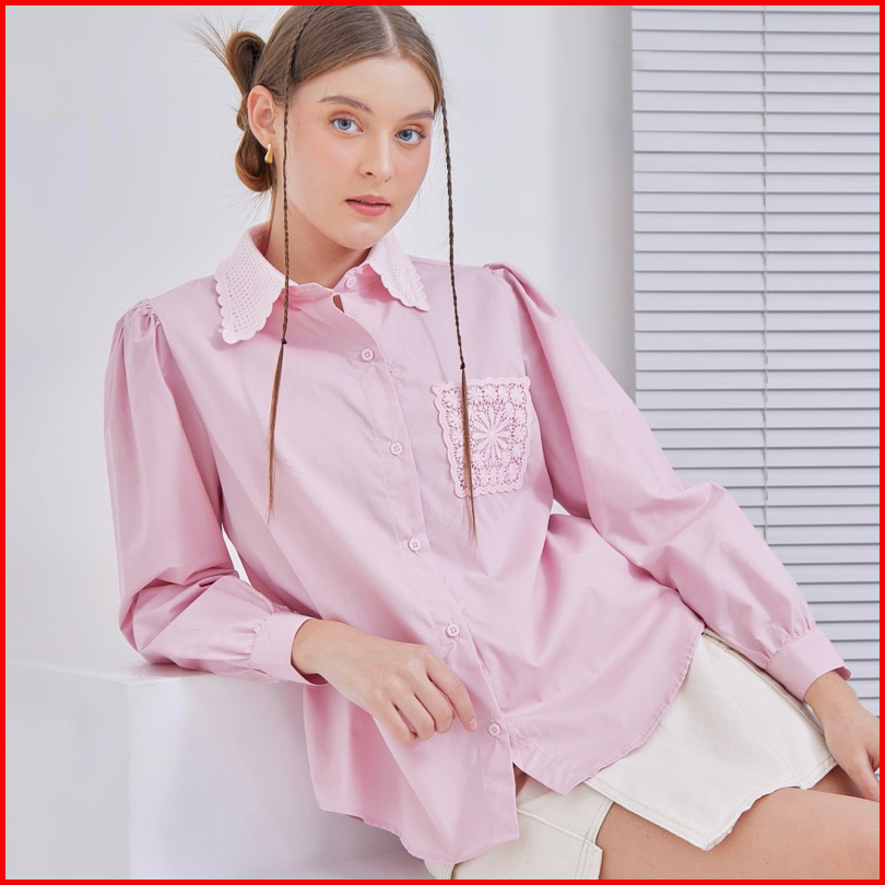 Senchi - Resu Lace Shirt Atasan Kemeja Wanita Renda Kemeja Wanita Style Jepang Korea Atasan Wanita Renda Lace