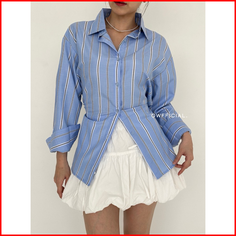 Nara Basic Stripe Shirt Kemeja Salur Striped Shirt Wanita Ngantor Working Baby Shirt Kemeja Kantor Kerja Wanita Polos Ba