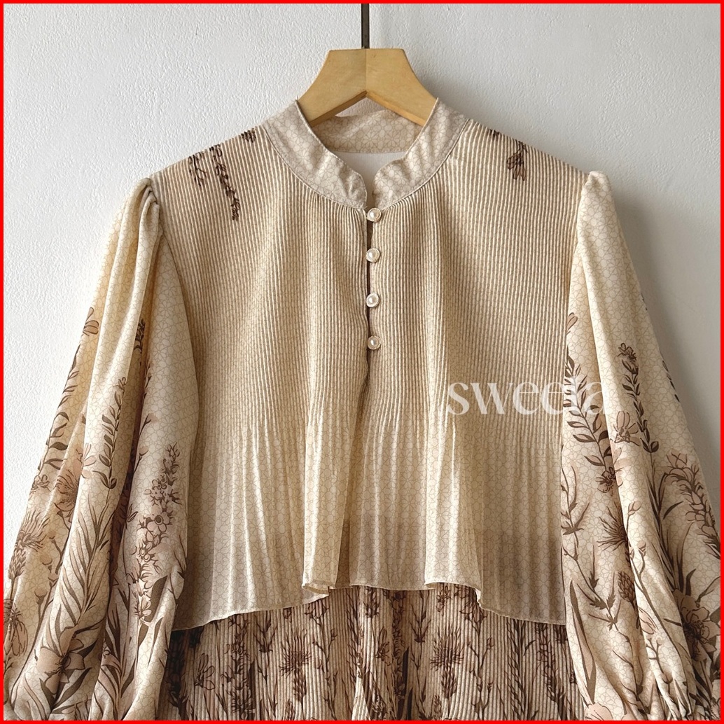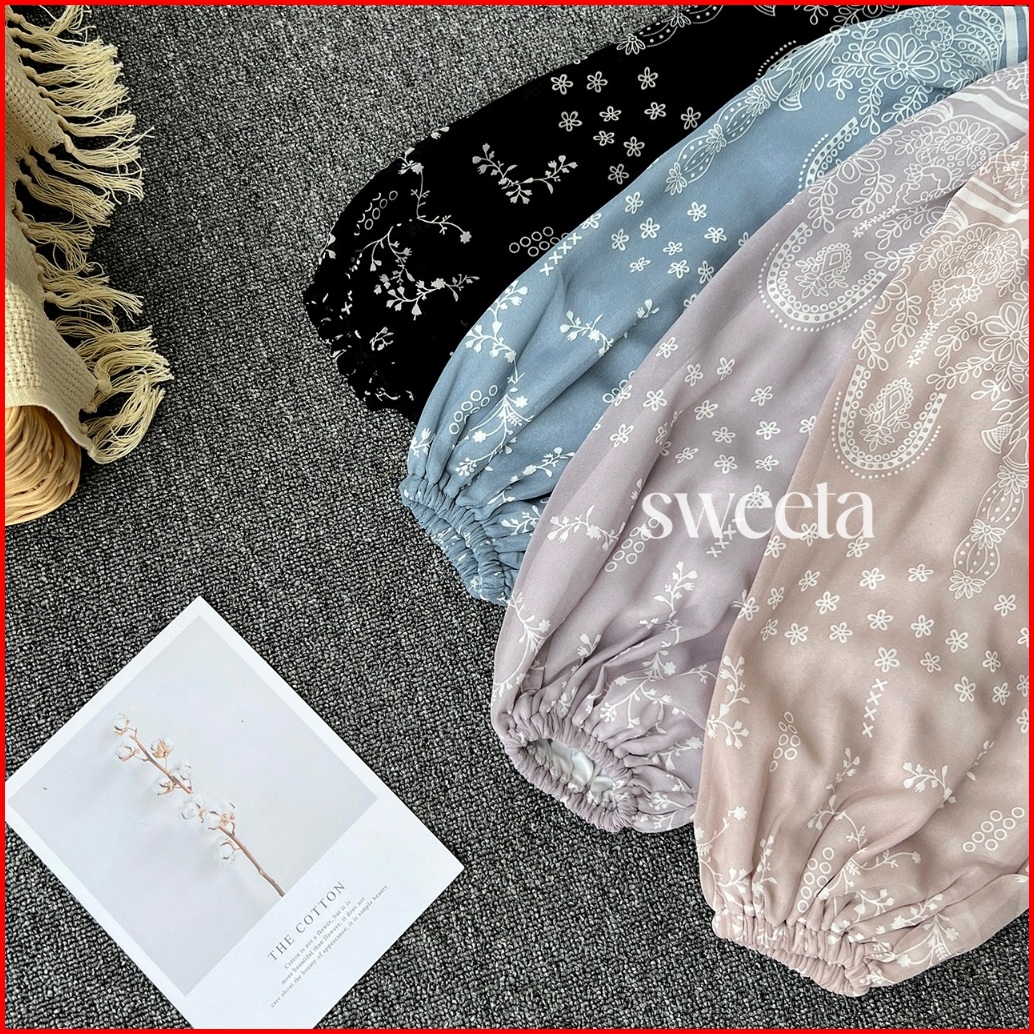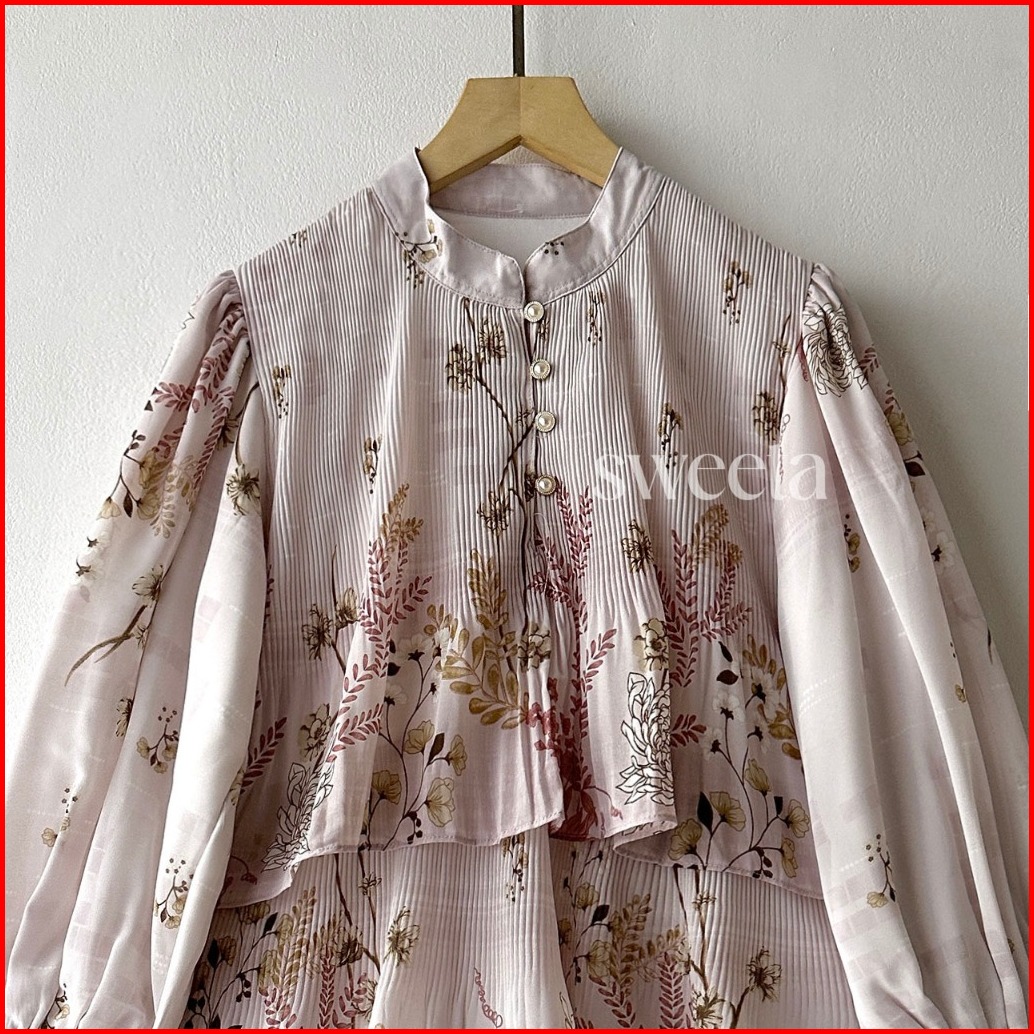 Sweeta Blouse Plisket Lengan Balon Motif Etnic Ld 110cm Ceruty Full Furing Korea Style Oversize Atasan Pakaian Wanita Sh