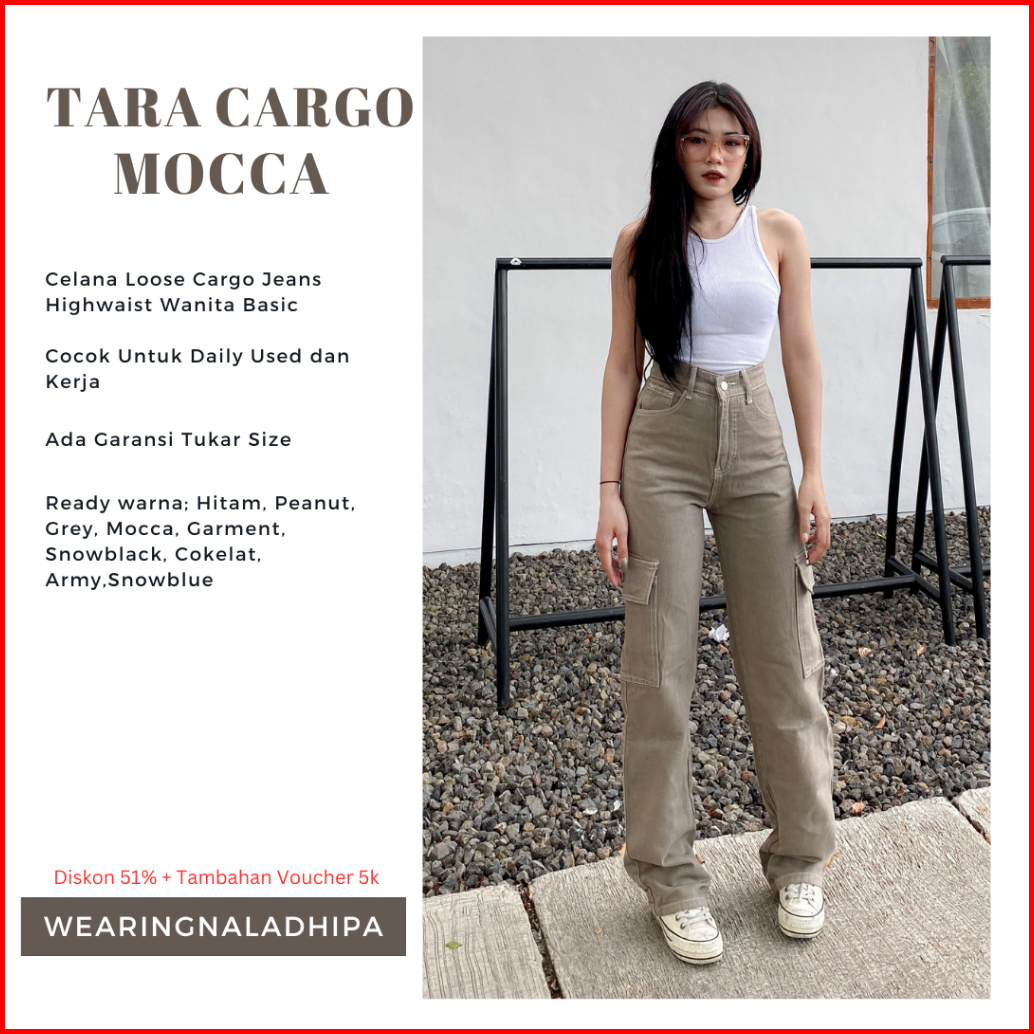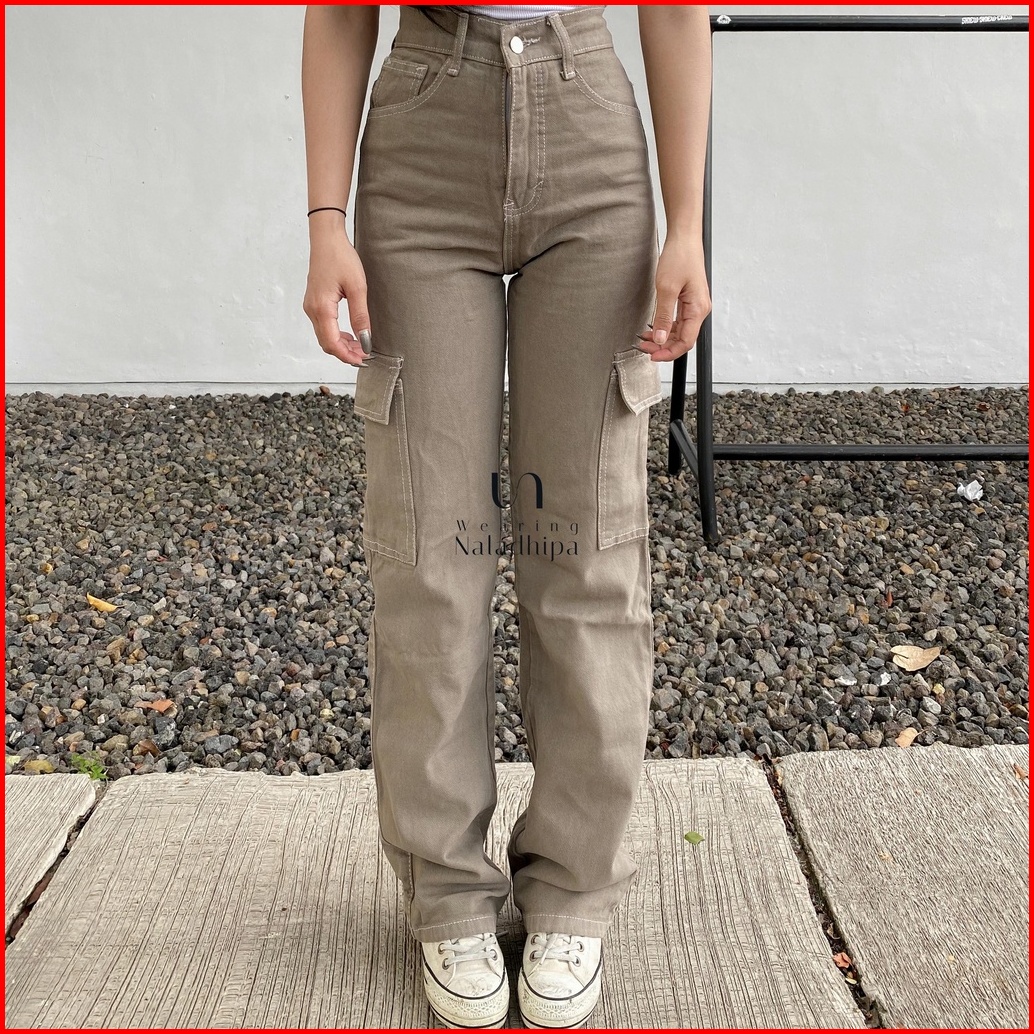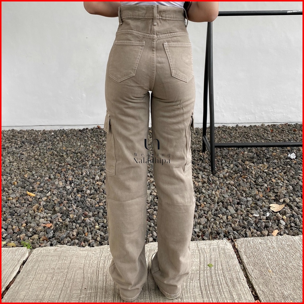 Tara Cargo Mocca - Highwaist Cargo Jeans Pants Wanita