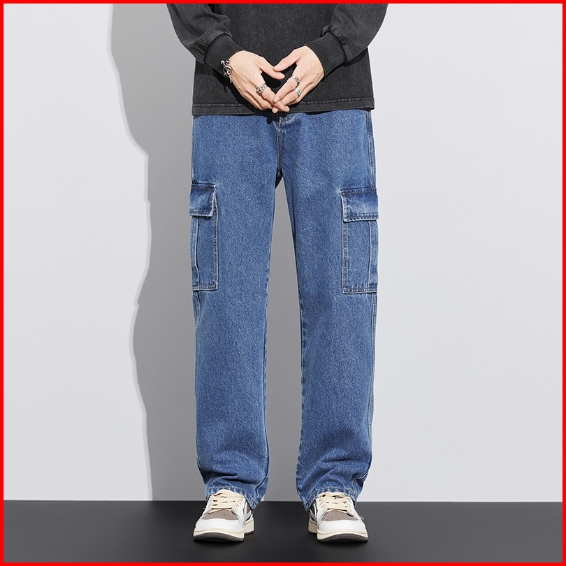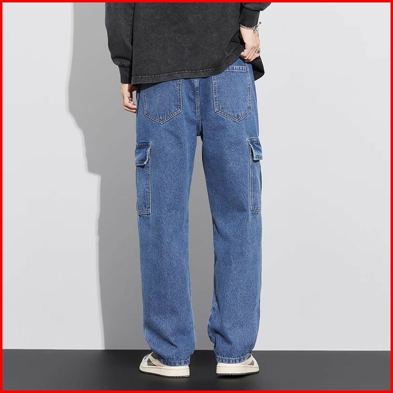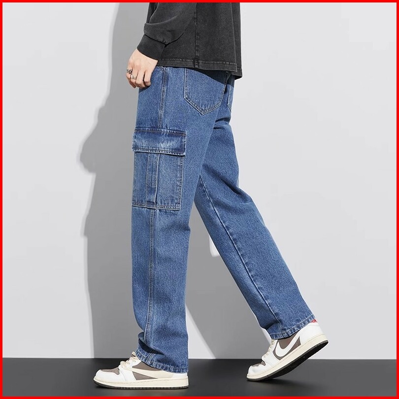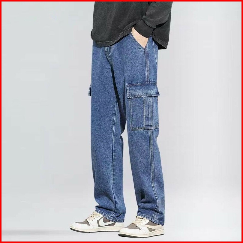 Keyboy Celana Cargo Panjang Pria Baggy Straight Baggy Celana Dewasa Casual Loose Denim Kargo Korean Style