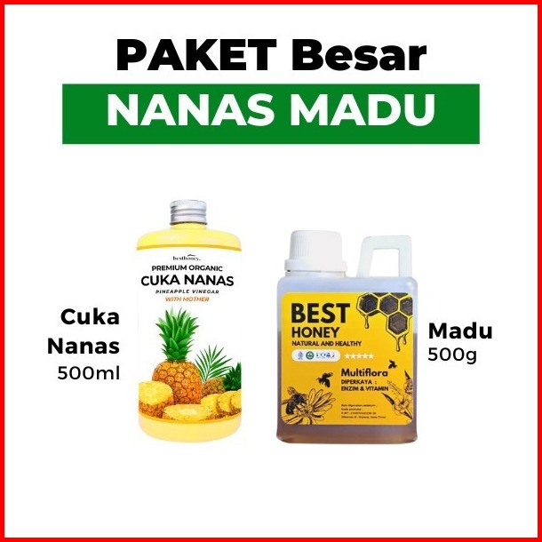 Paket Bundling Diet Sehat - Detox Asam Urat - Cuka Nanas Dan Madu Multiflora - 250 Ml - 500 Gr Asli