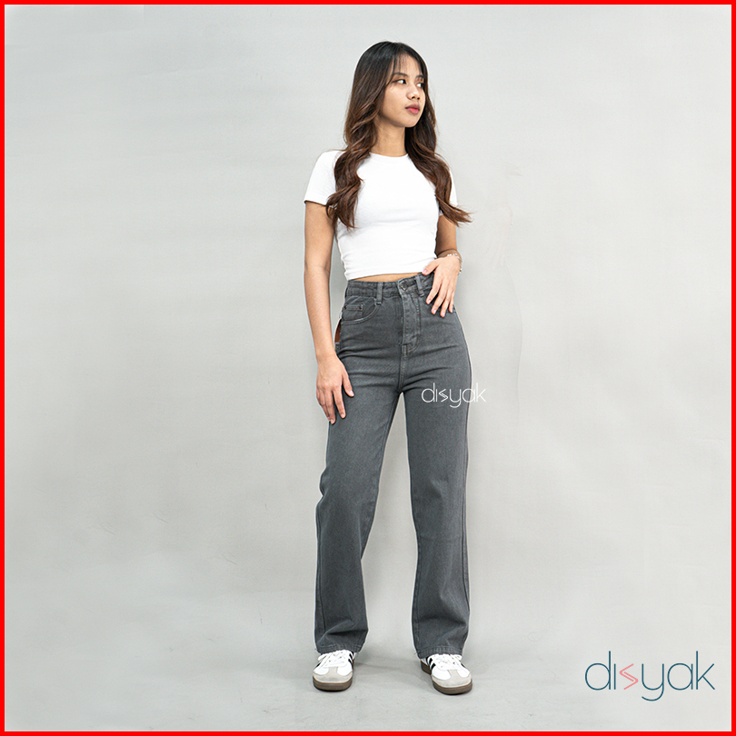 Disyak - Highwaist Loose Jeans Boyfriend Standar Grey 103-203