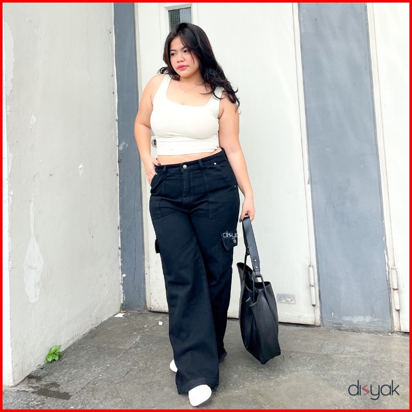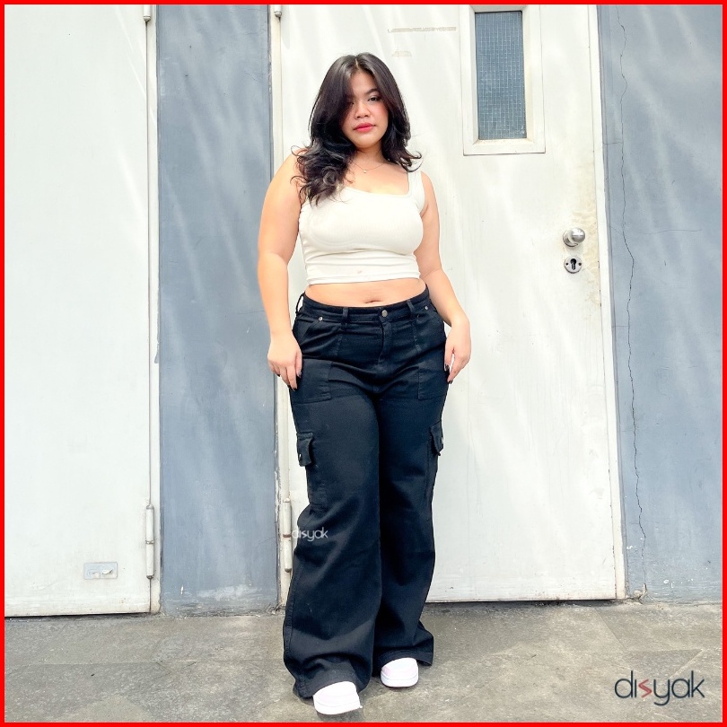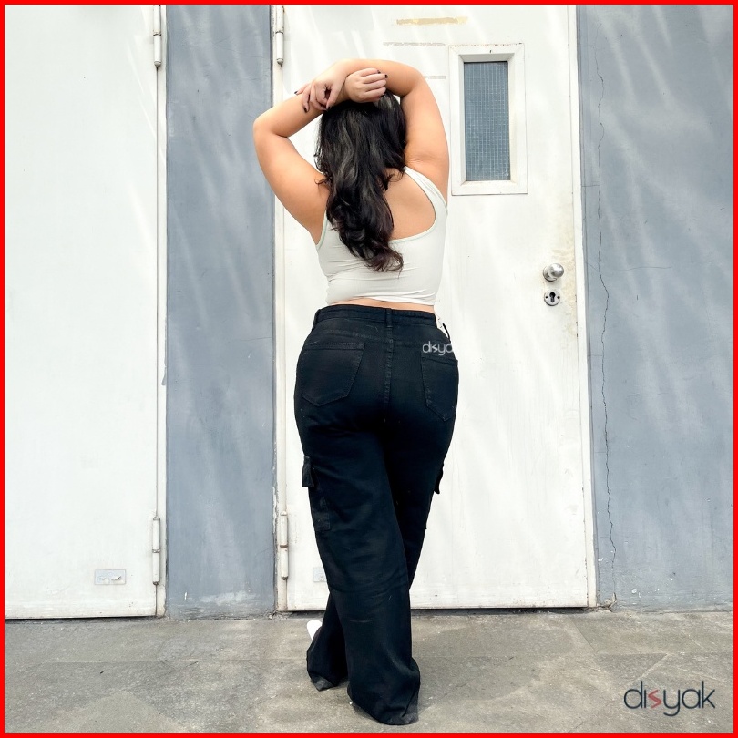 Disyak - Jumbo Boyfriend Cargo Jeans Black 916