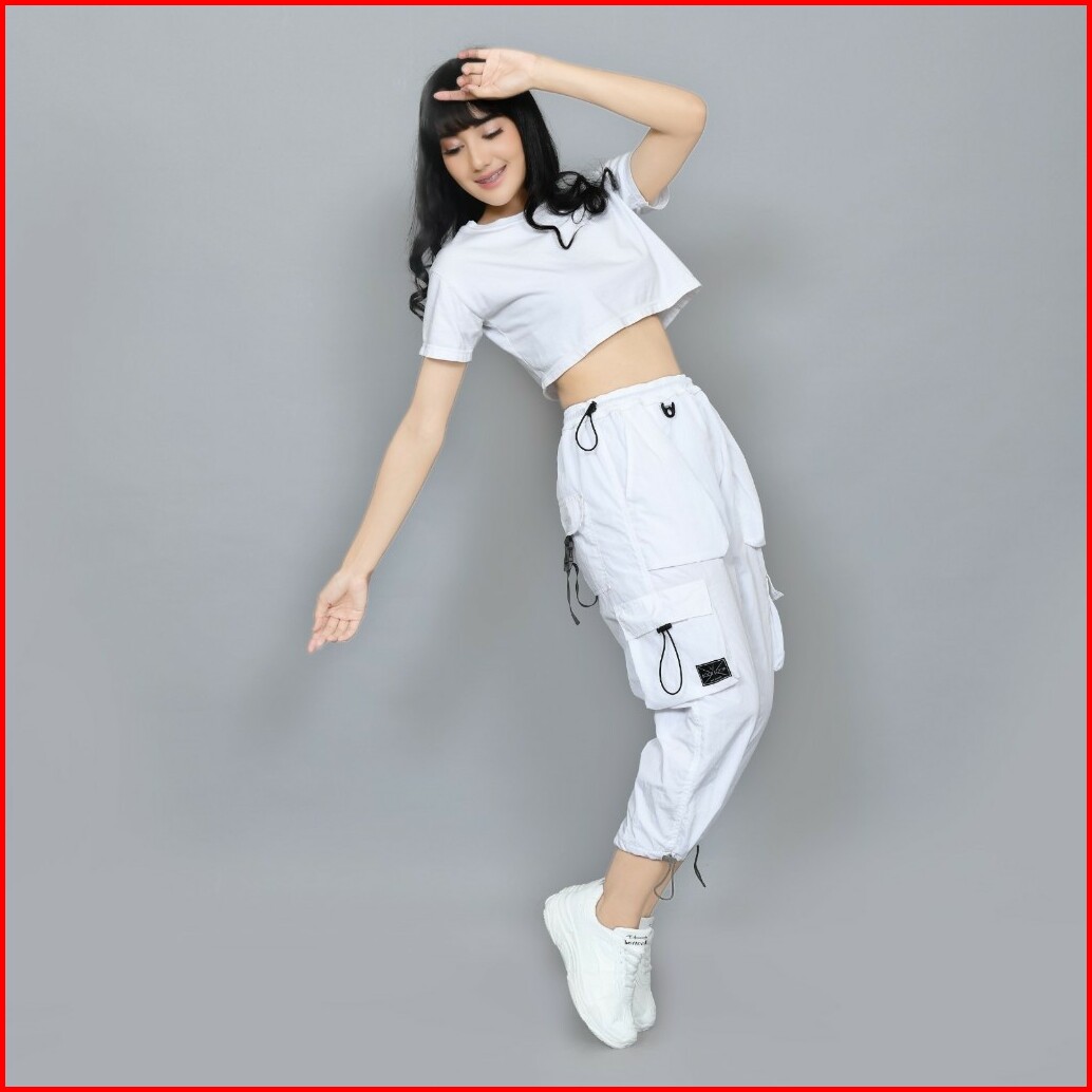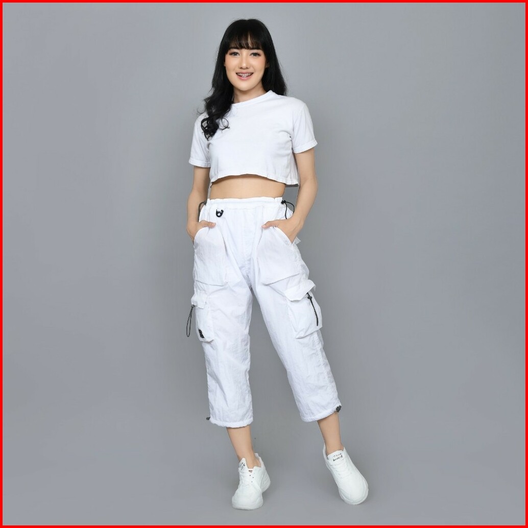 Bootloop - Parasut Cargo White - Celana Cargo Parasut 7 8 Wanita