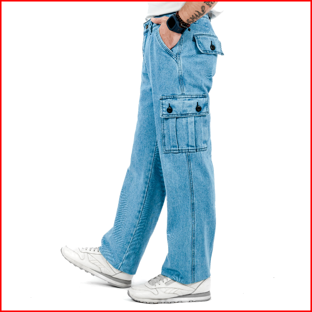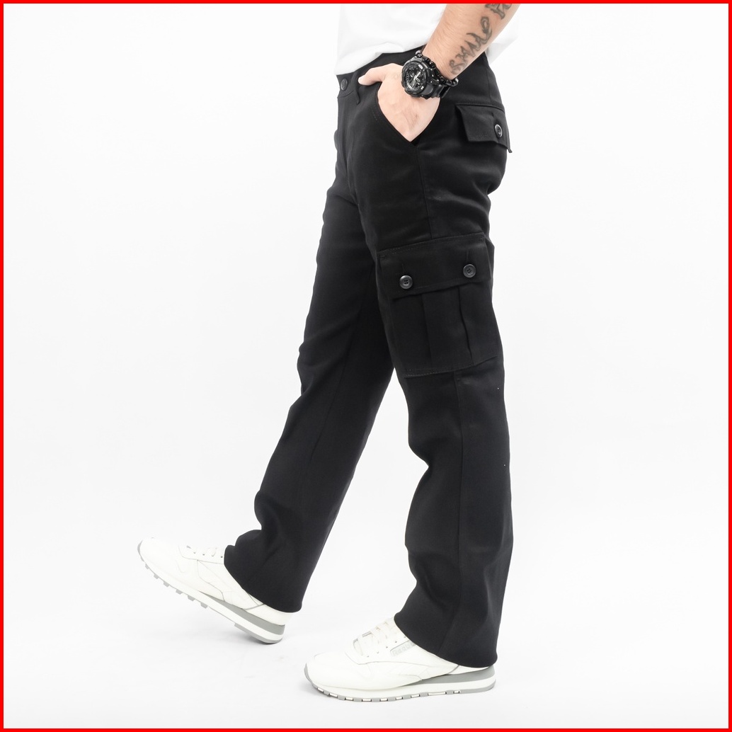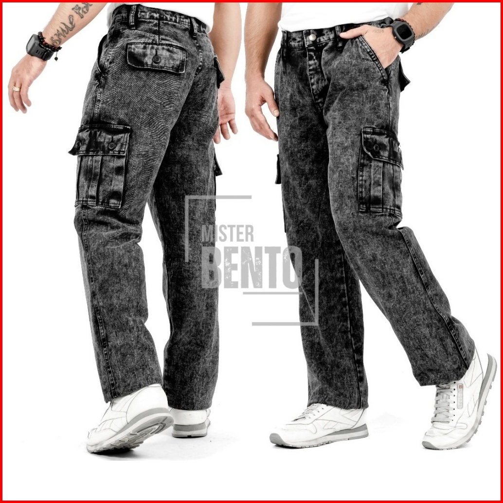 Celana Cargo Jeans Pria Loose Fit Reguler Cargo Pants Jeans Reguler Standard Denim Black Wash Sandwash
