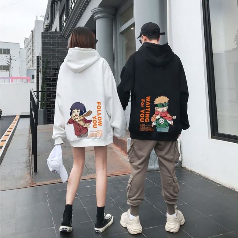 Hoodie Polos dan Motif Anime / Hoodie Couple Naruto dan Hinata Bahan Hudi Fleece Unisex Pria Wanita