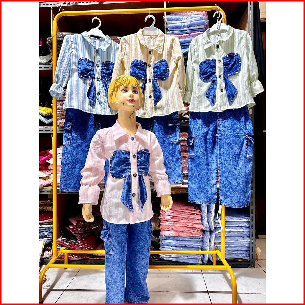 Setelan Anak Celana Jeans Cargo Dasi Combi Cey Airflow Motif Import