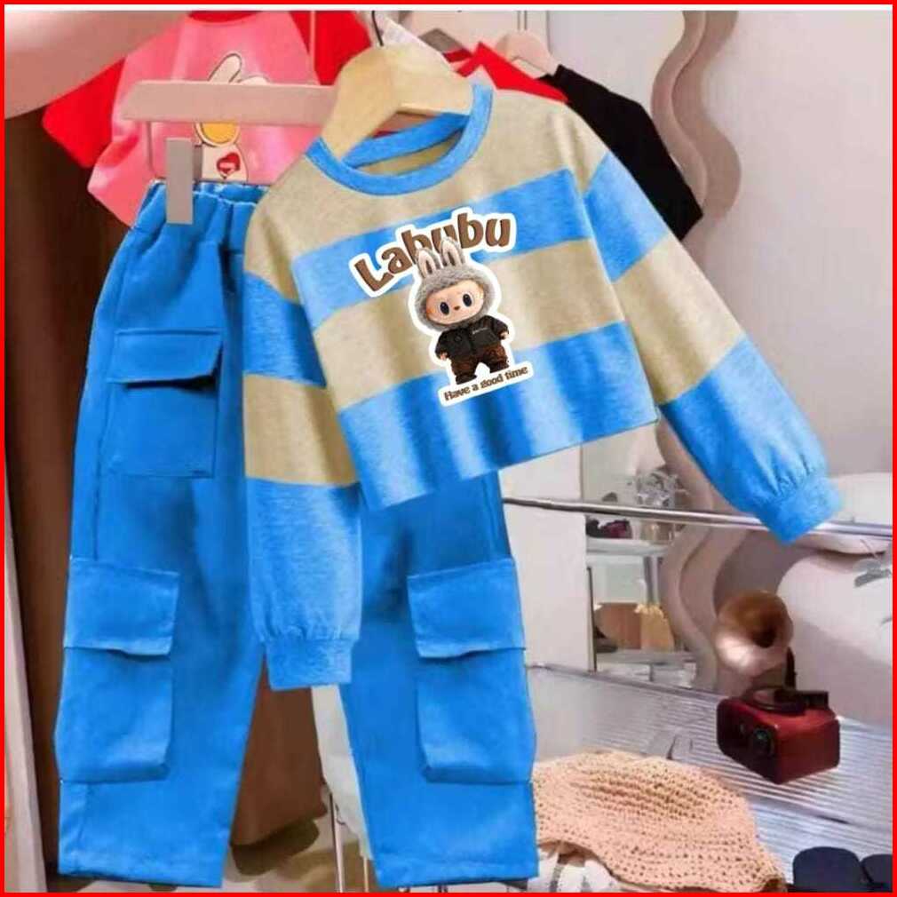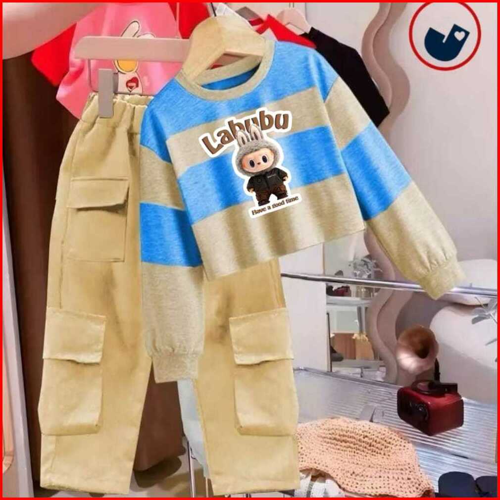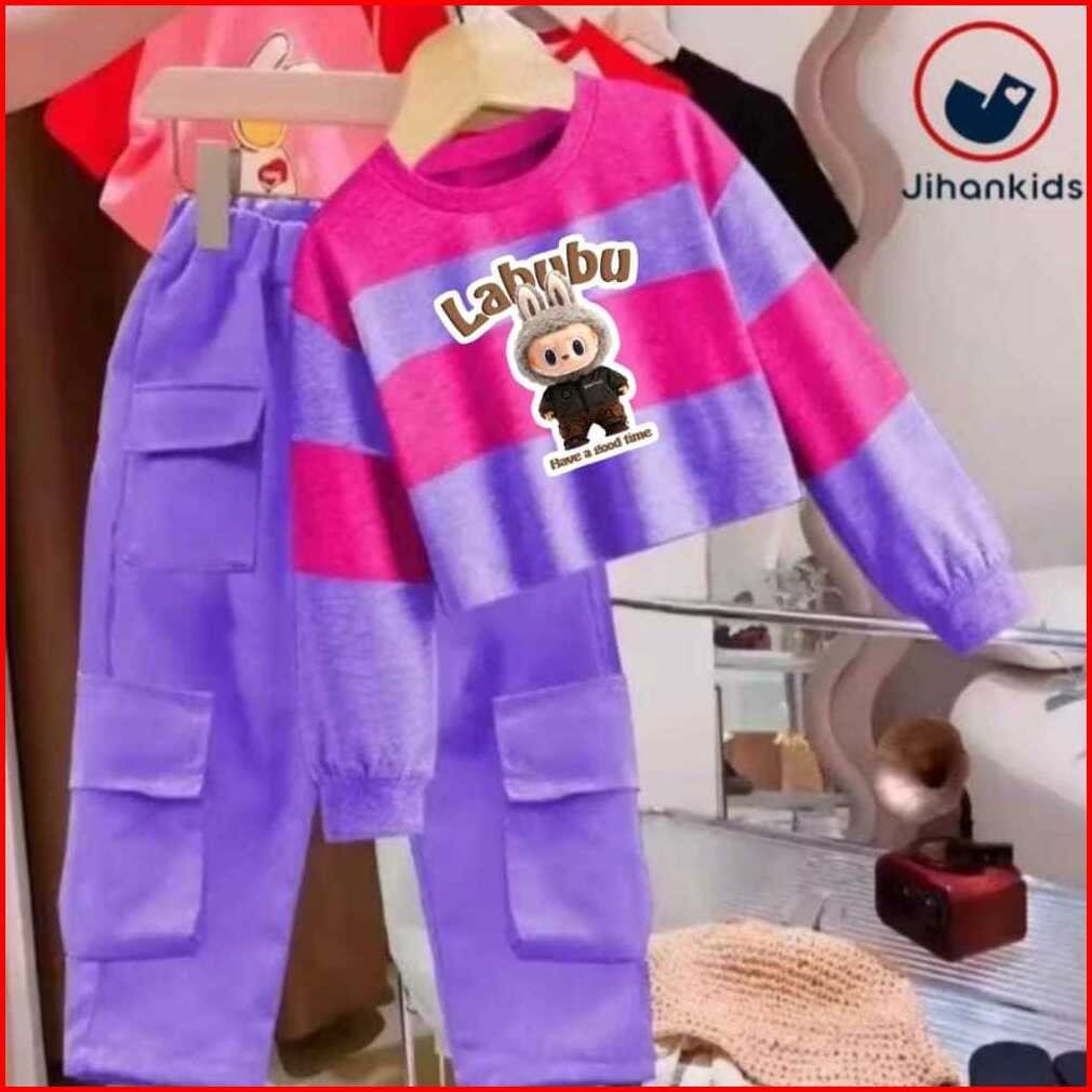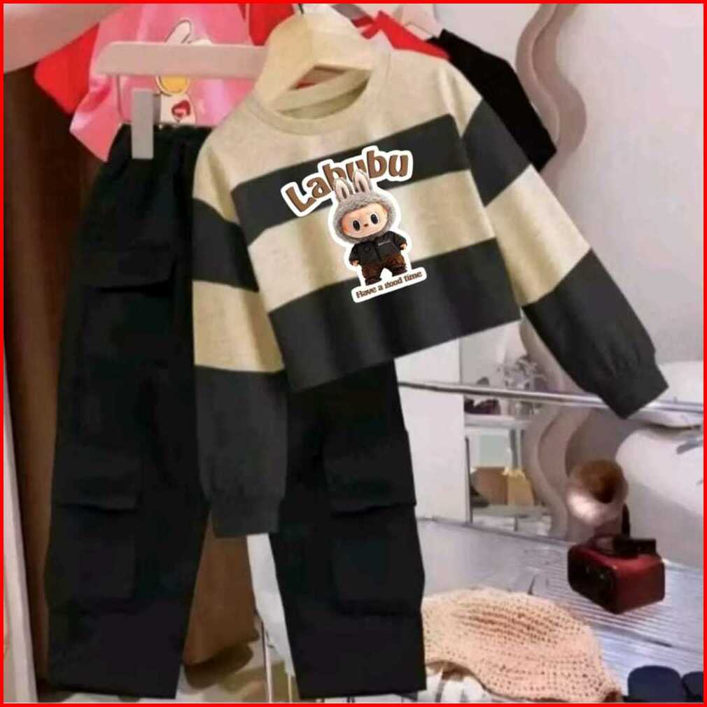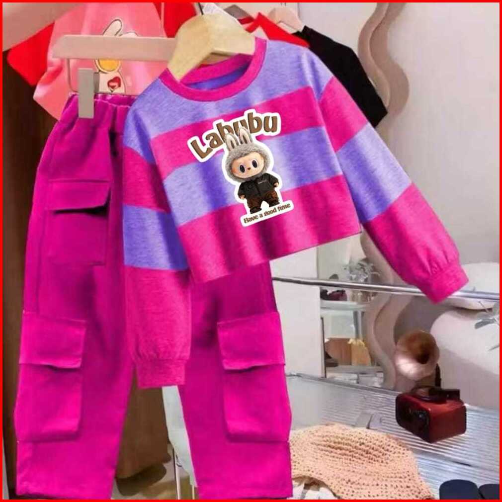 Setelan Terlaris Anak Perempuan Kargo Salur Motif Labubu 1 - 12 Tahun