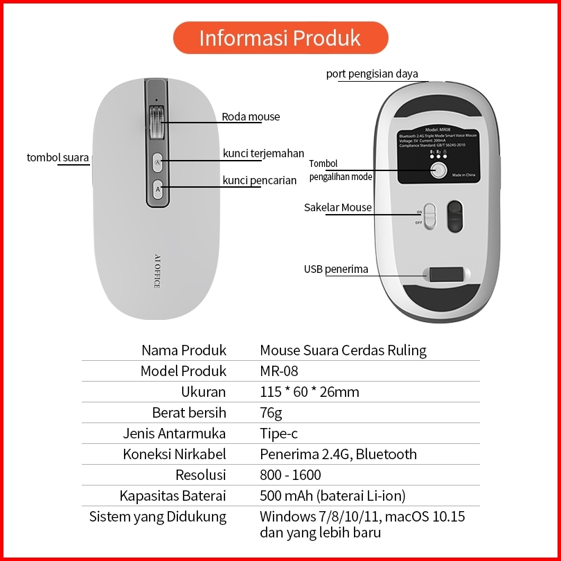 Rulink Miclink R08 Mouse Pintar Fitur Pengenalan Suara Pencarian Otomatis Silent Click Wireless
