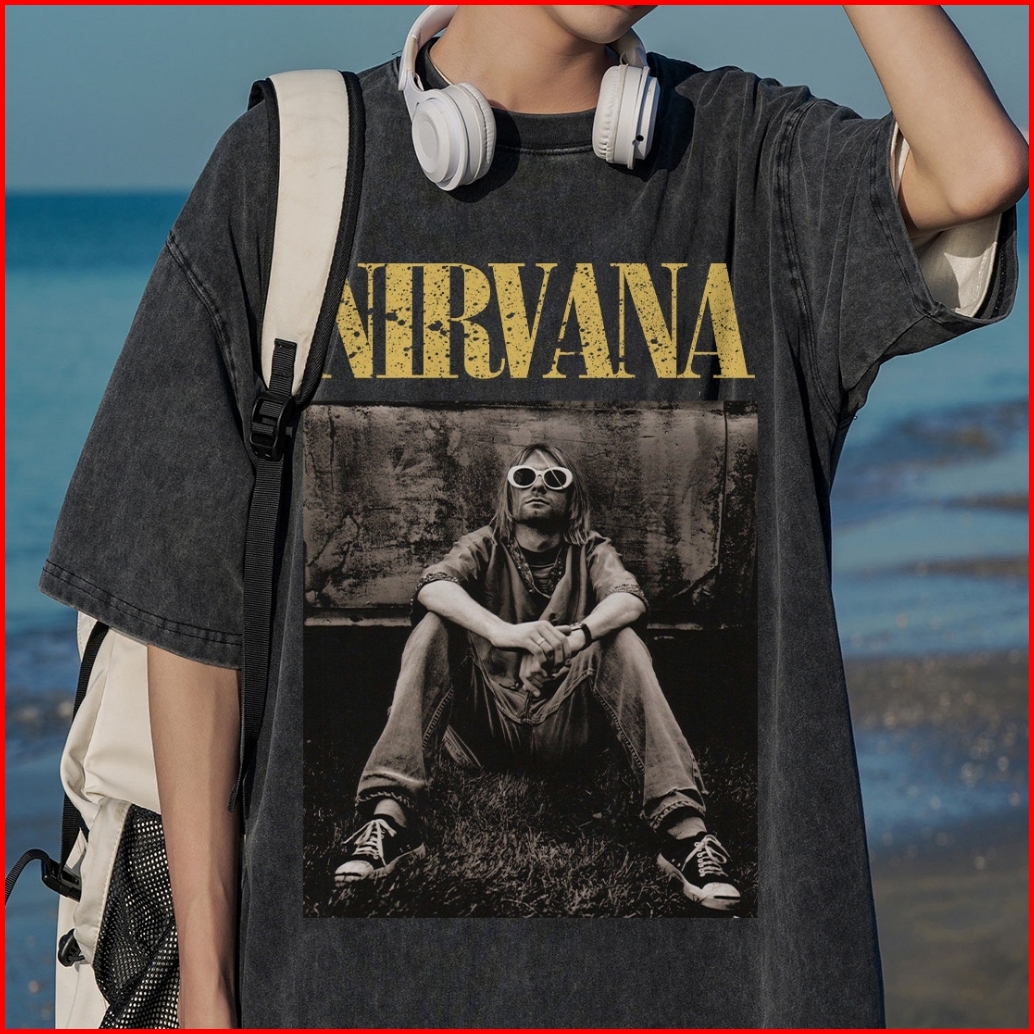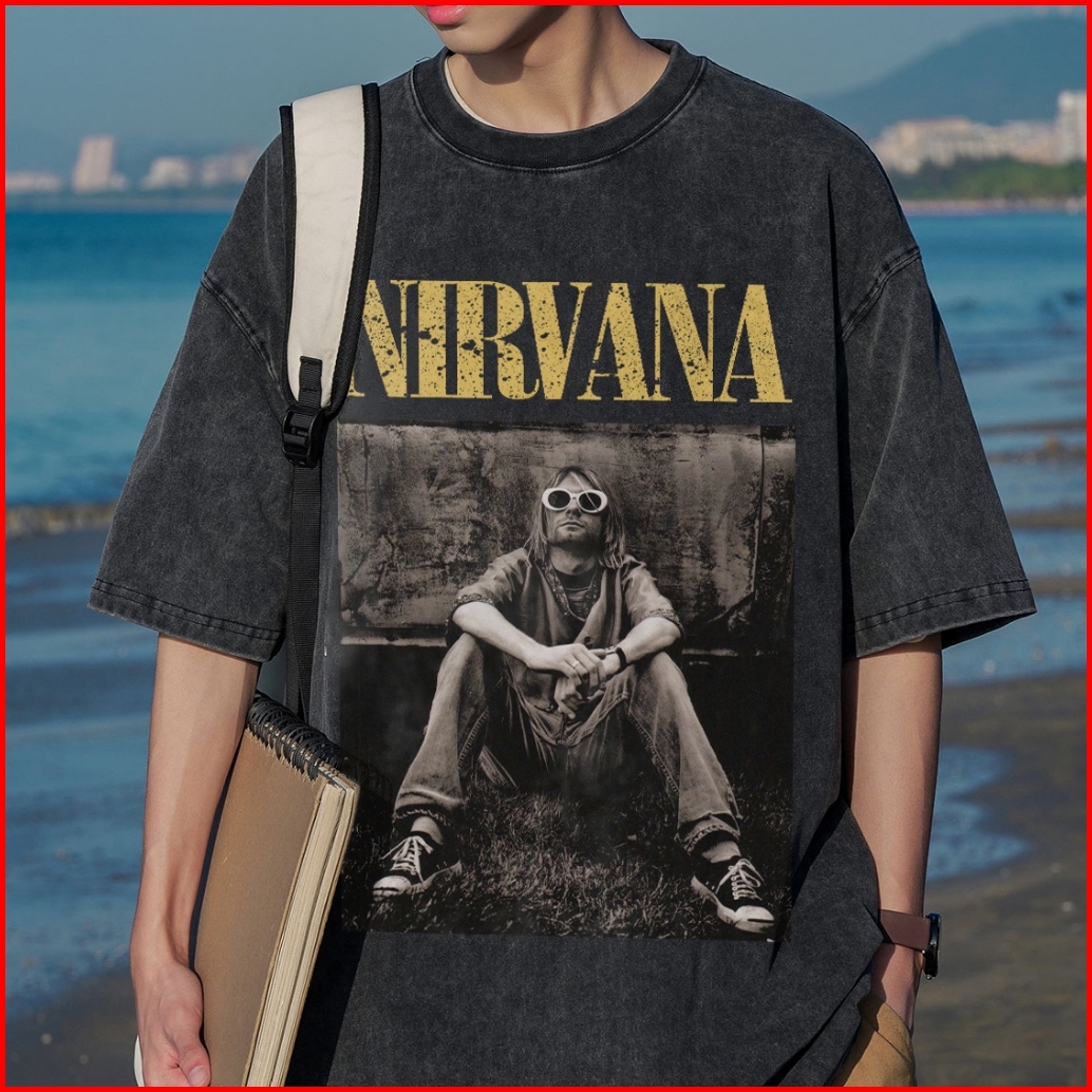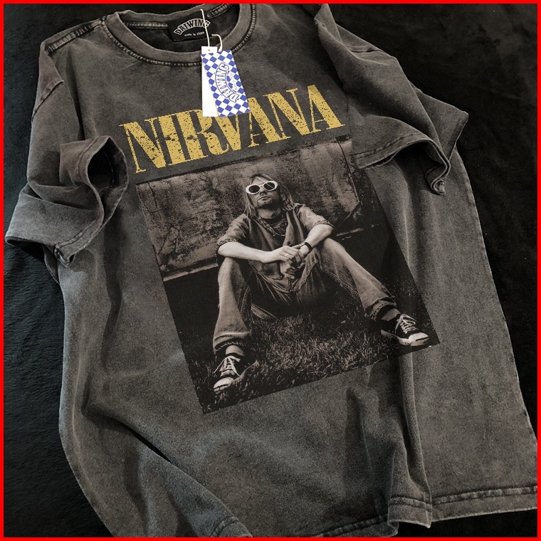 Disneay Kaos Pria T-shirt Baju Kaos Oversize Nirvana Vintage Longgar Kaos Washed Pria Baju Kaos Distro Oblong Pria 100