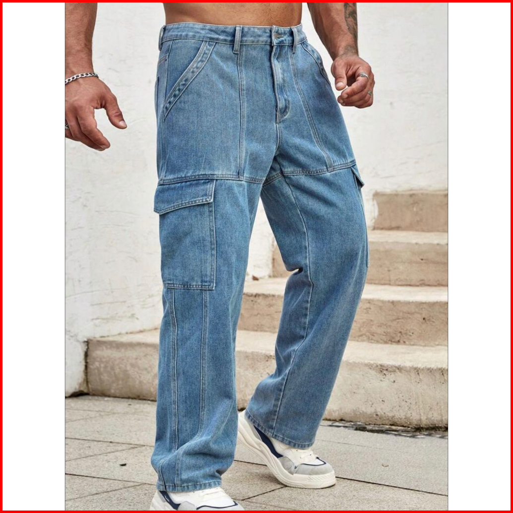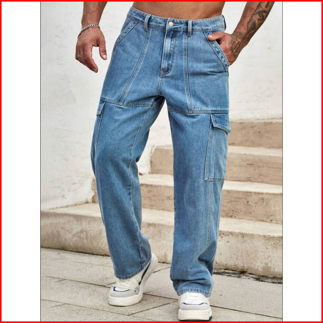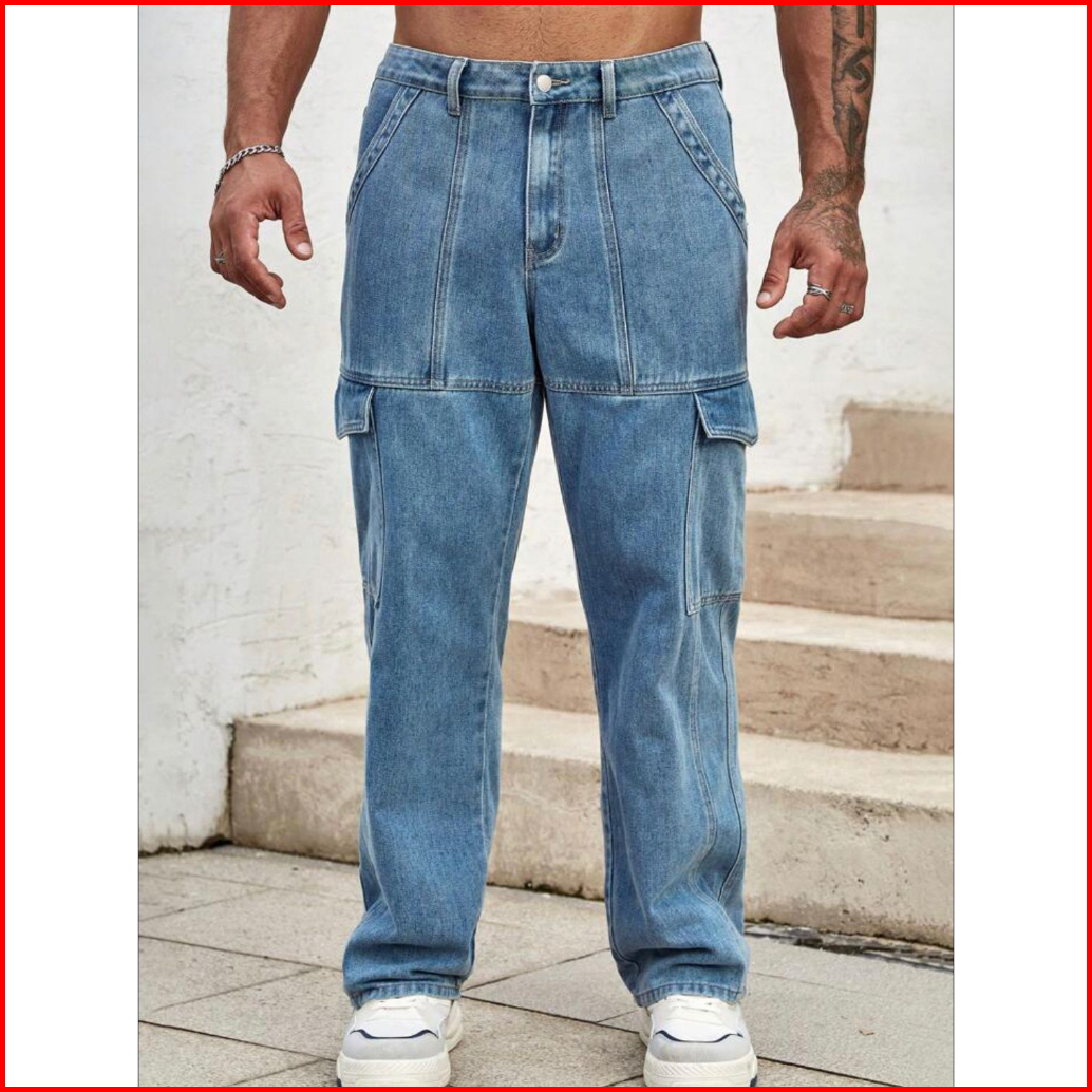 Mm Store Celana Cargo Pants Pria Jeans Reguler Loose Fit Standard Denim Washed Snow Blue Scpdw01d