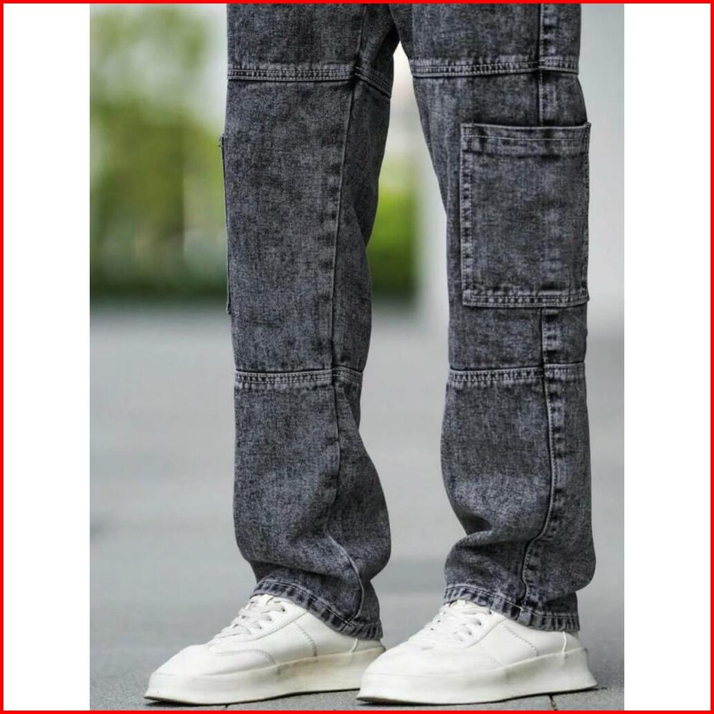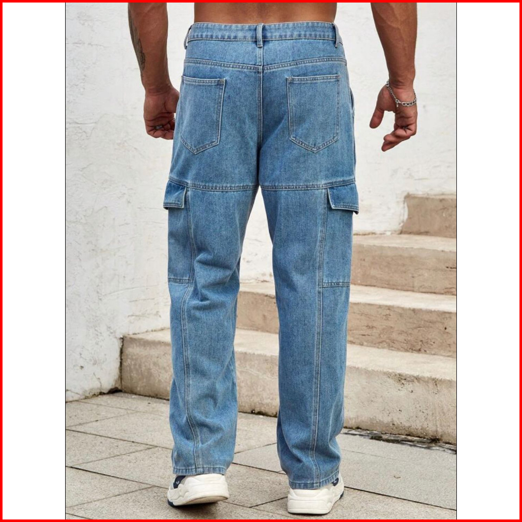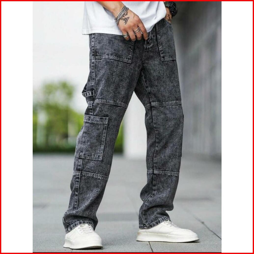 Mm Store Celana Cargo Pants Pria Jeans Reguler Loose Fit Standard Denim Washed Snow Blue Scpdw01d