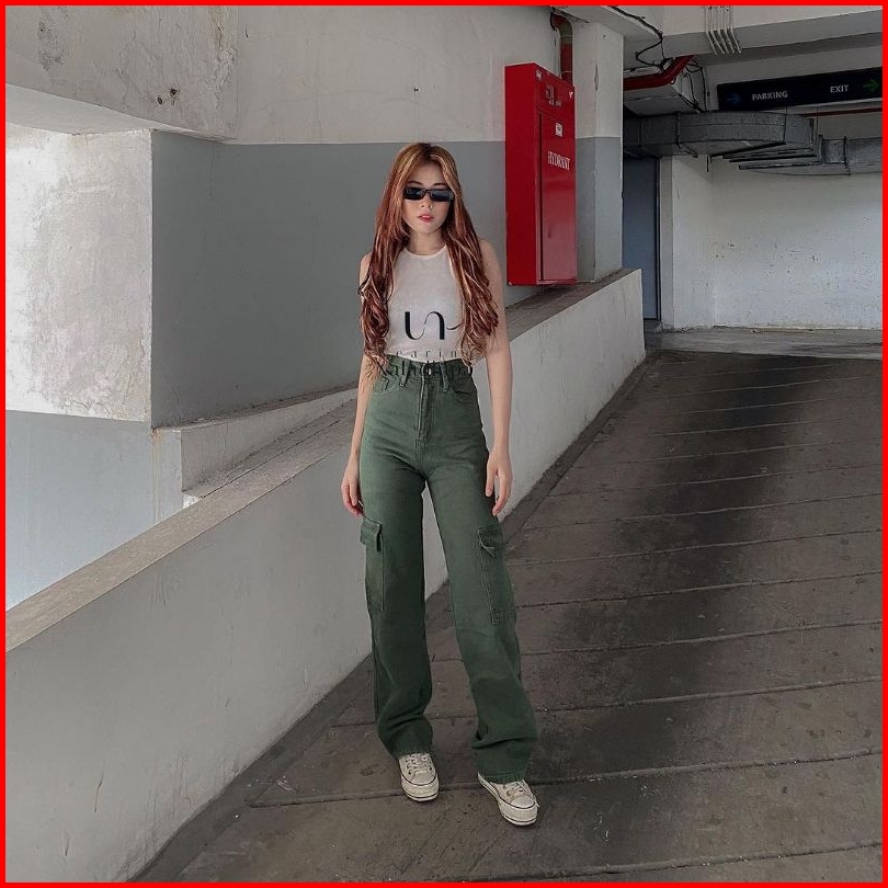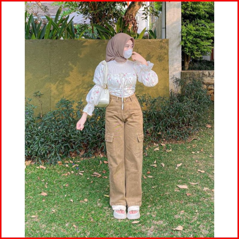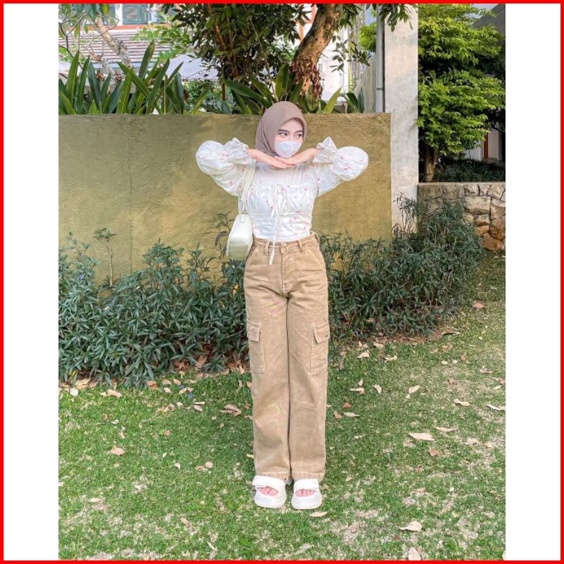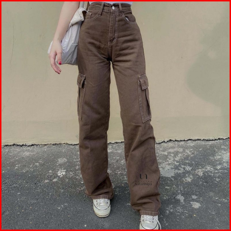 Cargo Highwaist Jeans Premium Celana Cargo Mocca