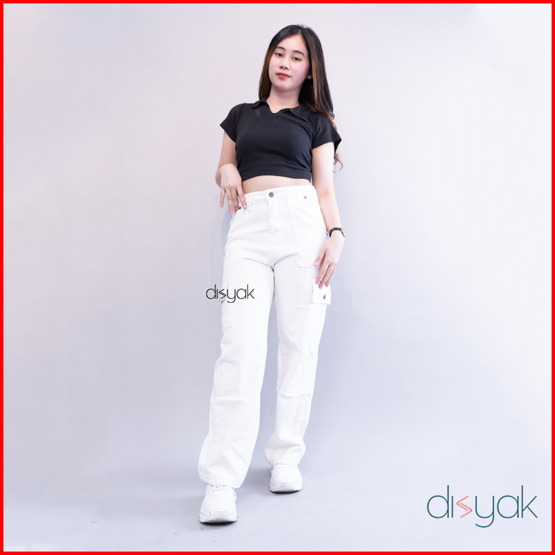 Disyak - Boyfriend Cargo Jeans Broken White 719-819