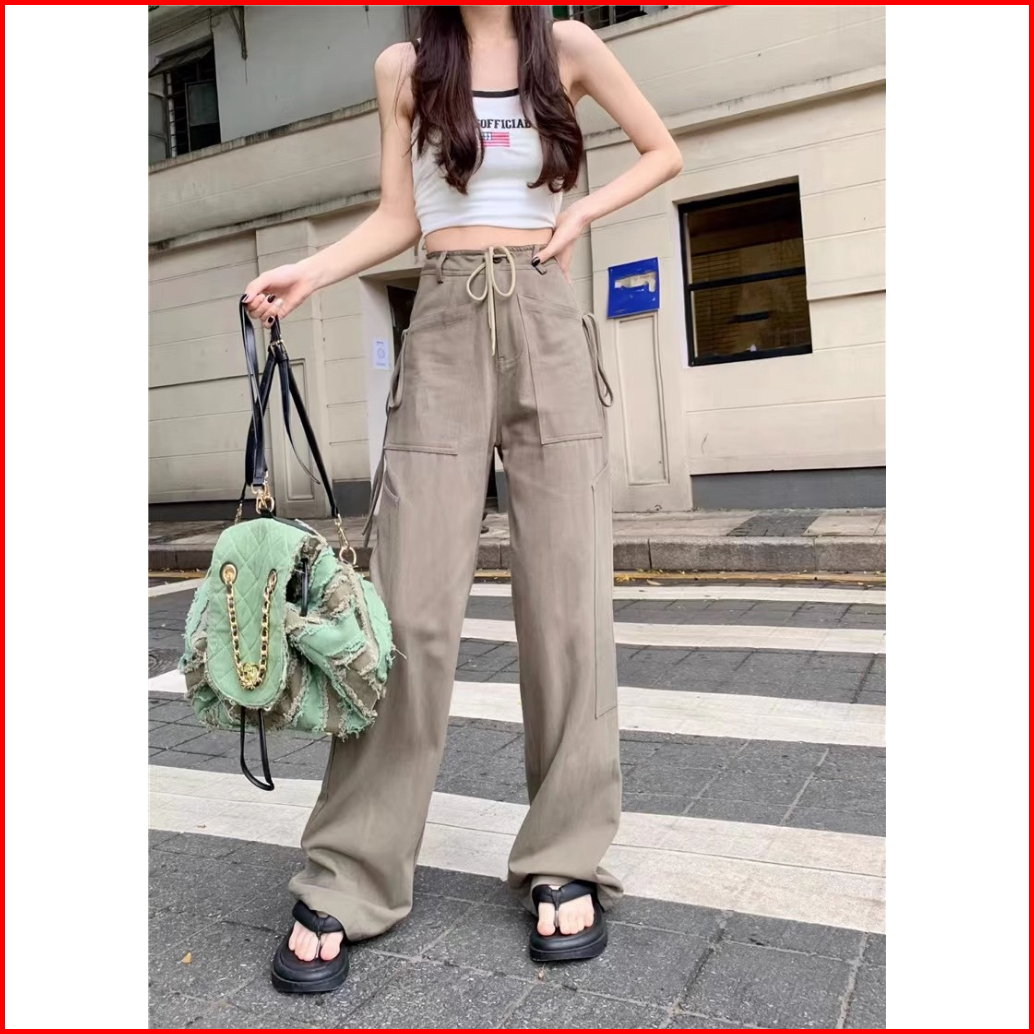 2024 Terakhir Hijau Militer Korean Cargo Celana Jeans Wantia