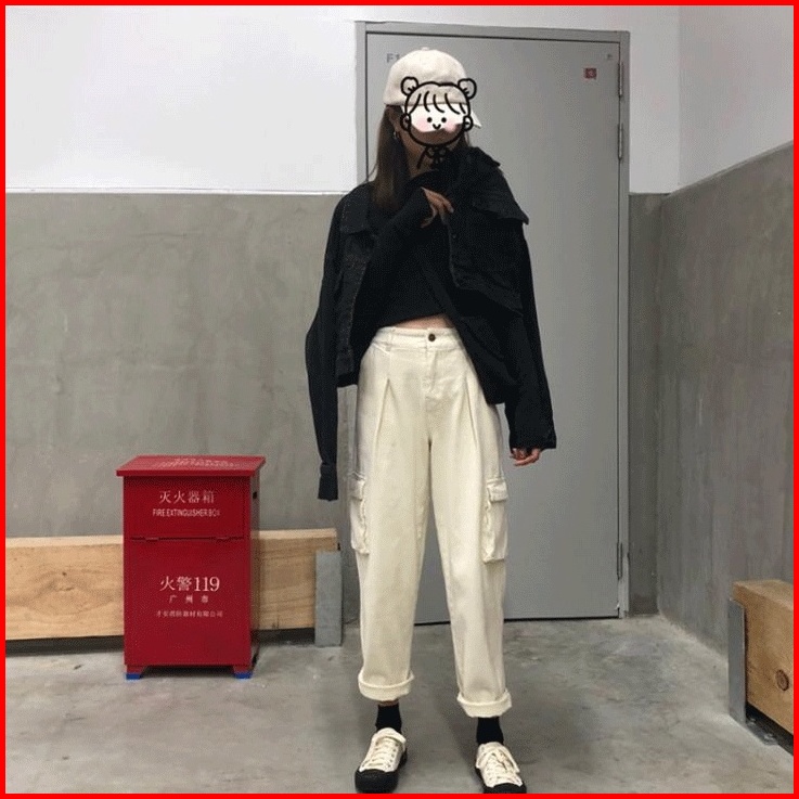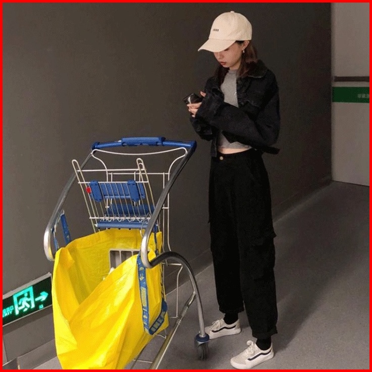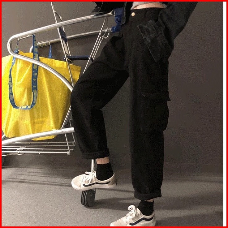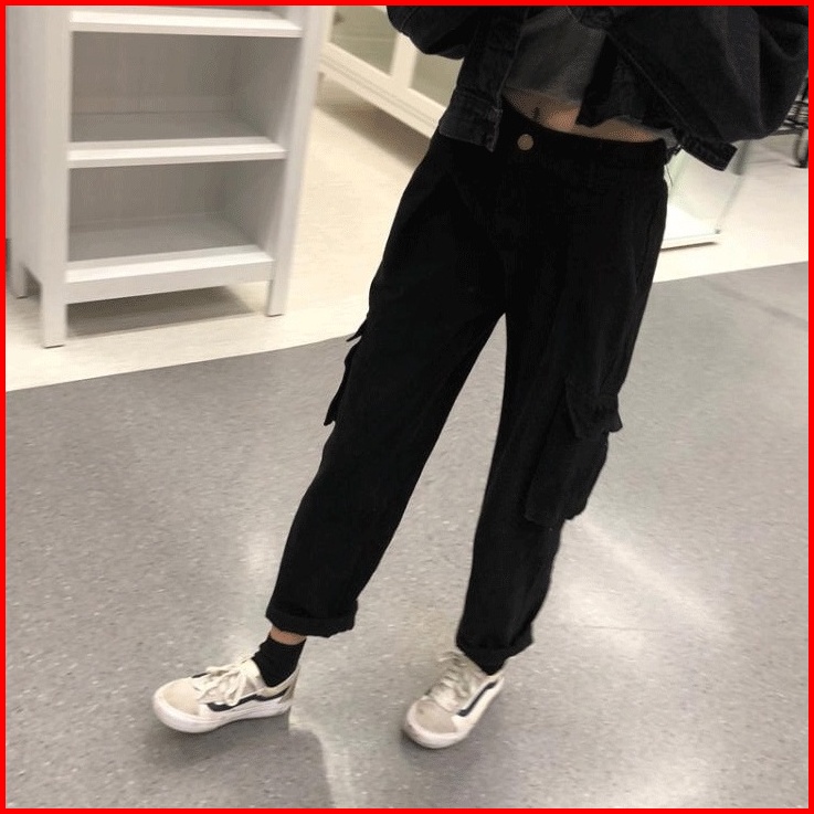 Lulu-- Highwaist Cargo Jeans Black Apricot --177 Realpict