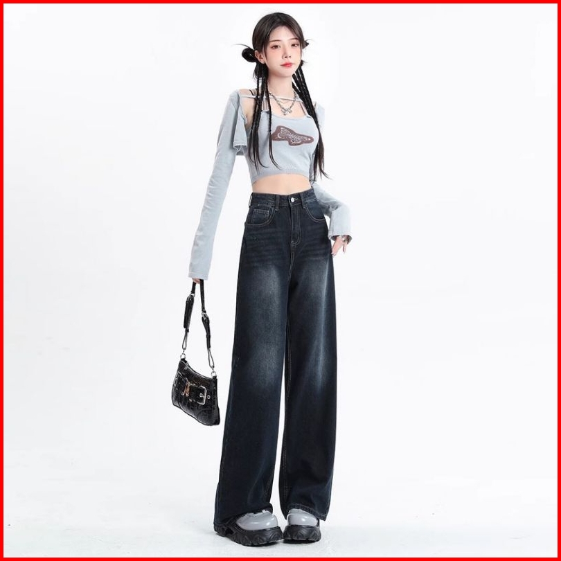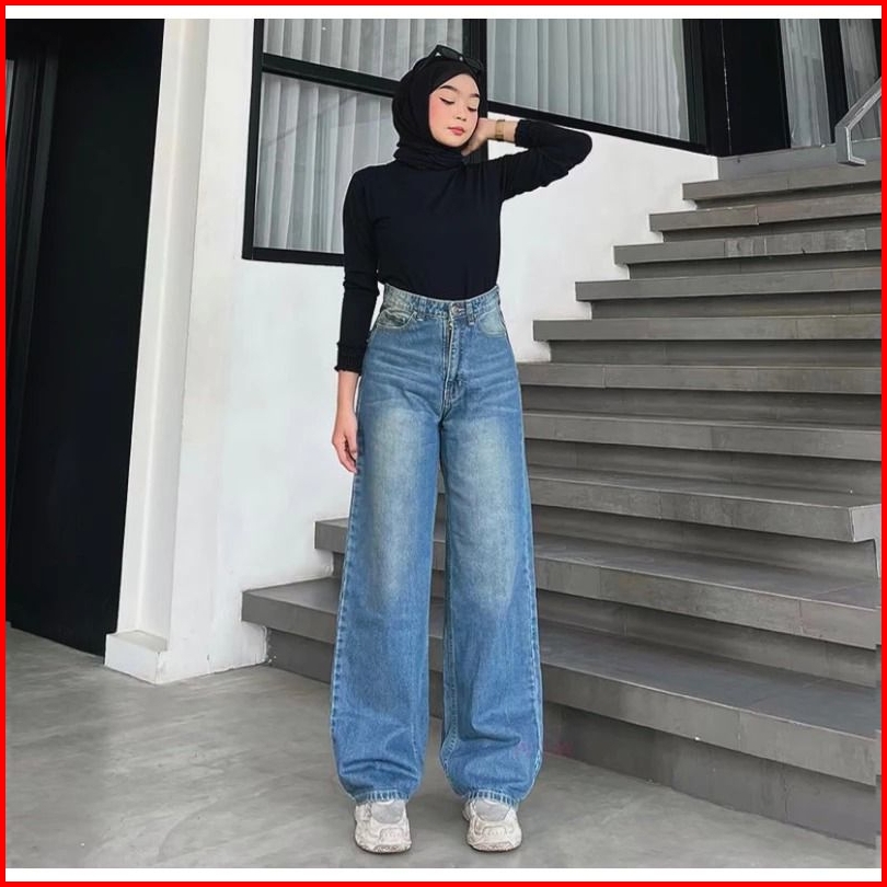 Highwaist Baggy Jeans Hangover Retro-celana Kulot Baggy Gombrong Denim Model Korea Terbaru