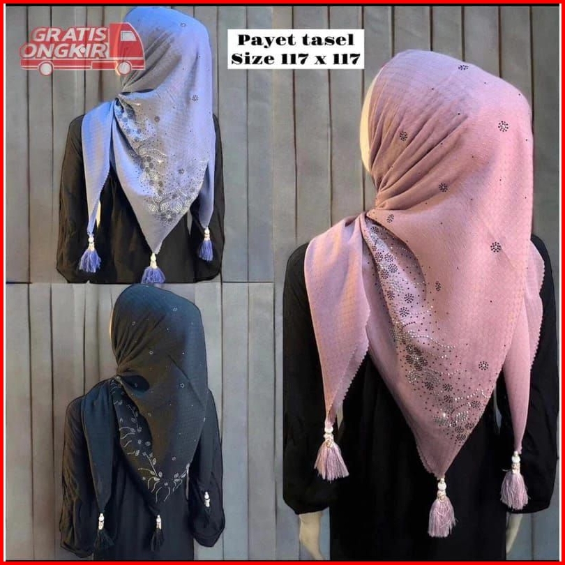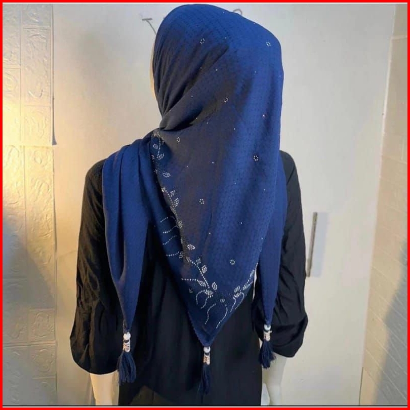 Hijab Segi Empat Payet Tasel Jambul Motif Butik Mewah Trend Jilbab Segiempat Potton Star Payet Jambul Pompom Kerudung Se