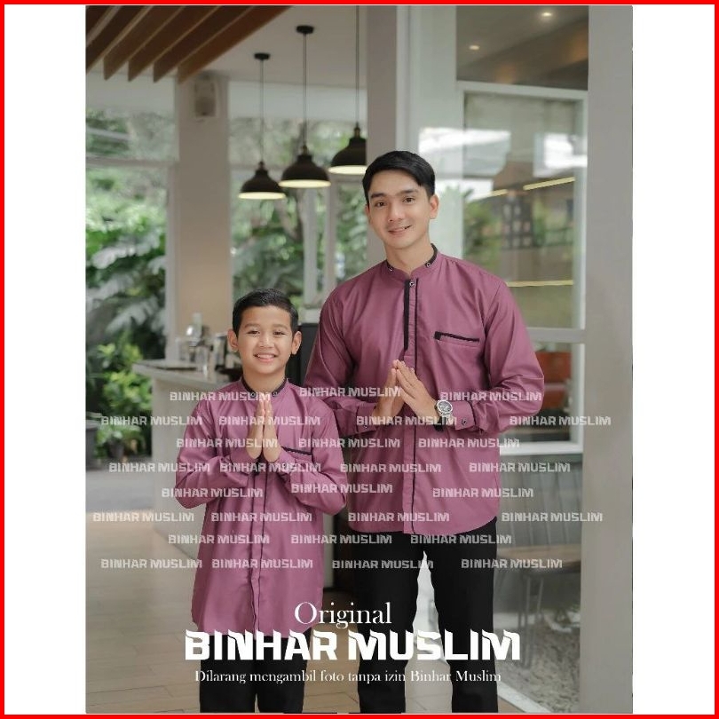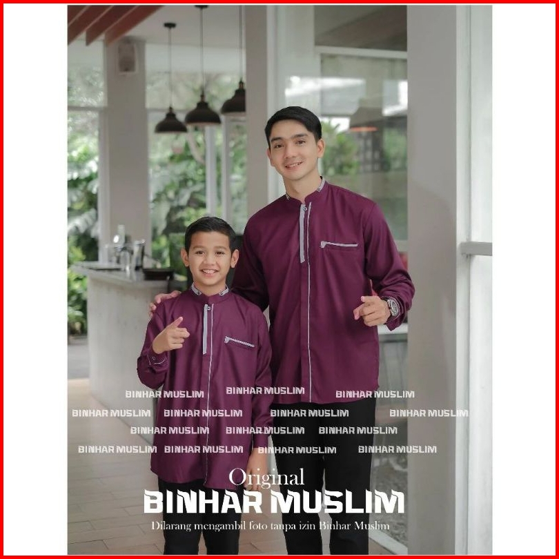 Baju Koko Couple Ayah Anak Laki Laki Warna Burgundy Lengan Panjang Bahan Toyobo Import Terbaru 2025