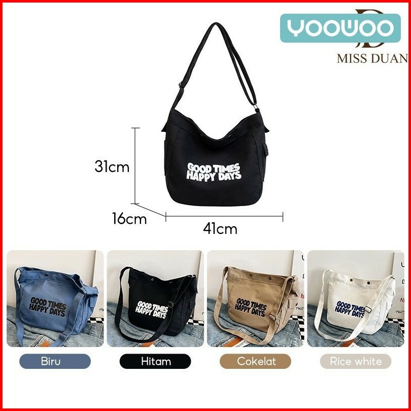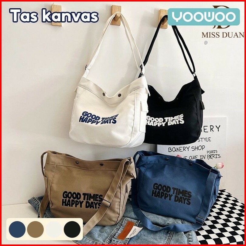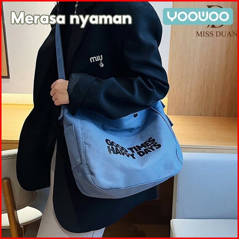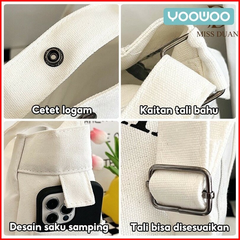 Yoowoo-tas Selempang Sling Bag Shoulder Bag Tas Kanvas Tebal Tas Sekolah