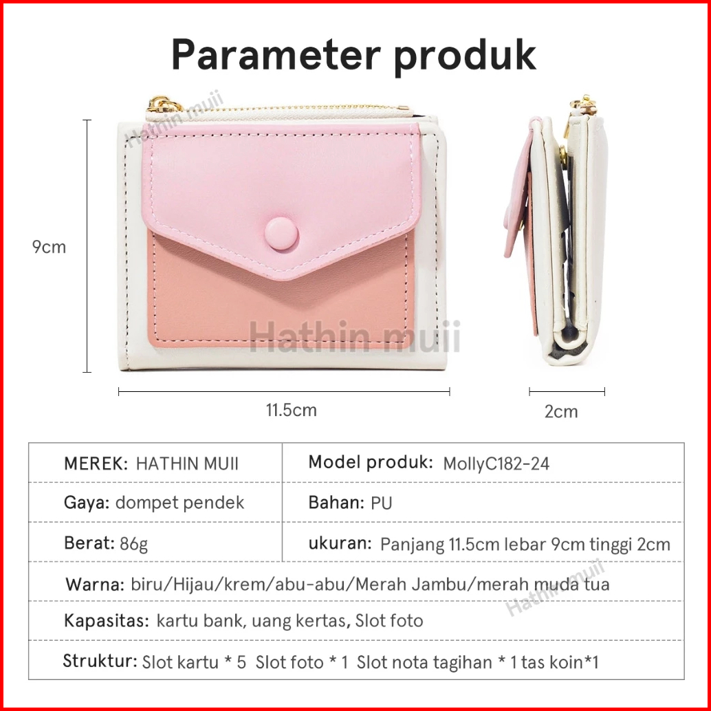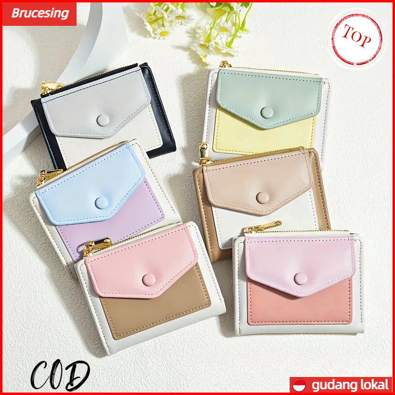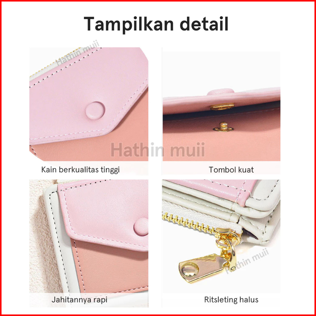 Dompet Kartu Wallet Wanita Lipat Kecil Bahan Kulitpu Leather Dompet Koin Fashion Short Card Wallet
