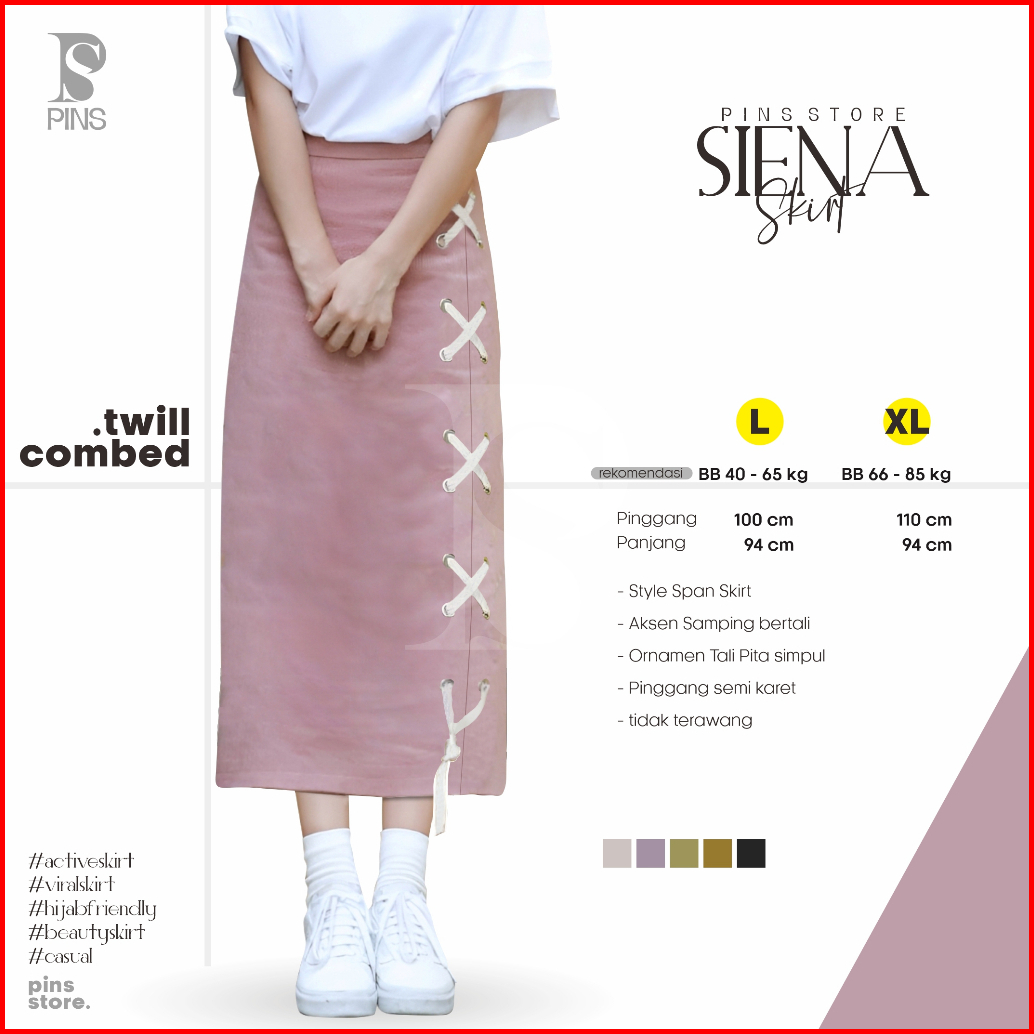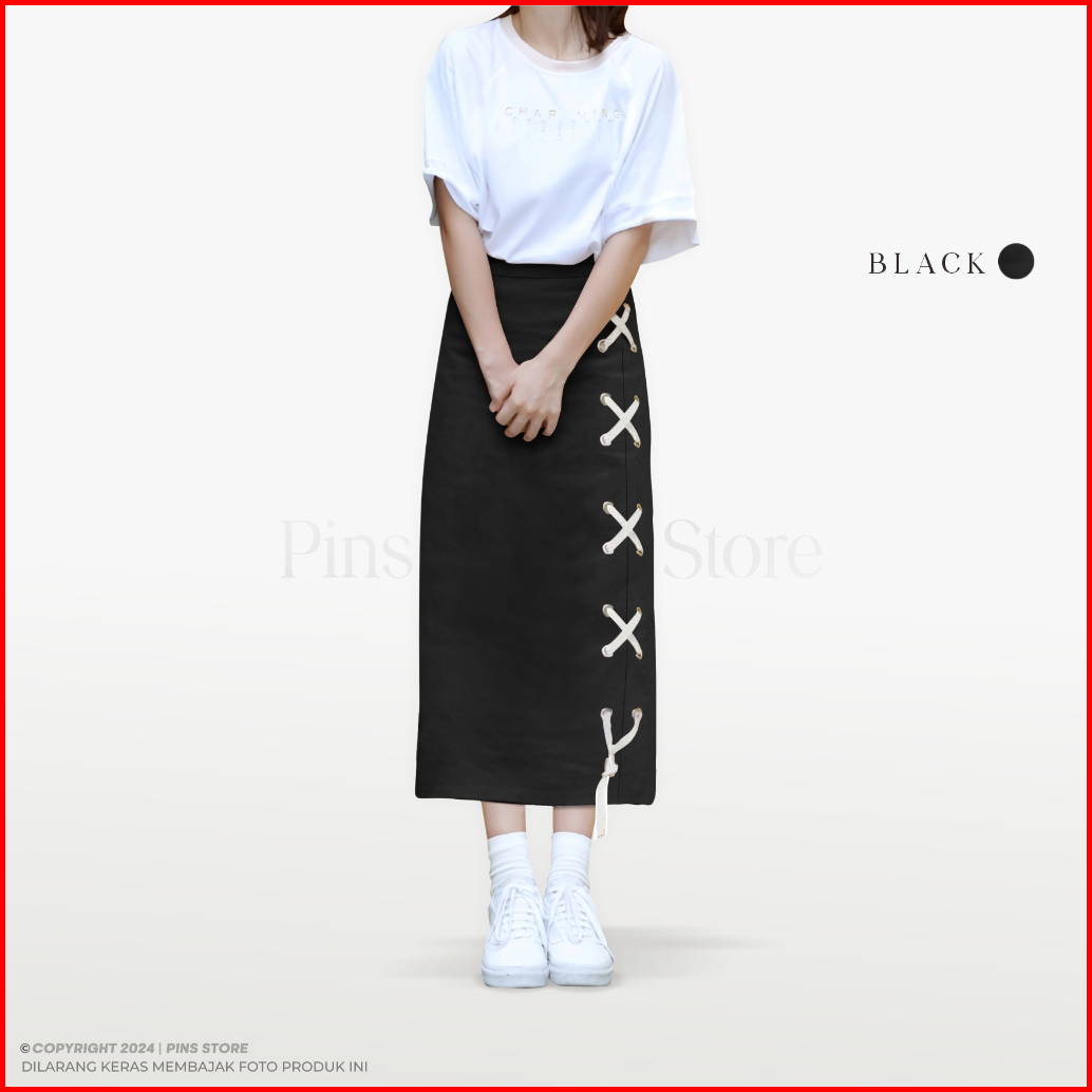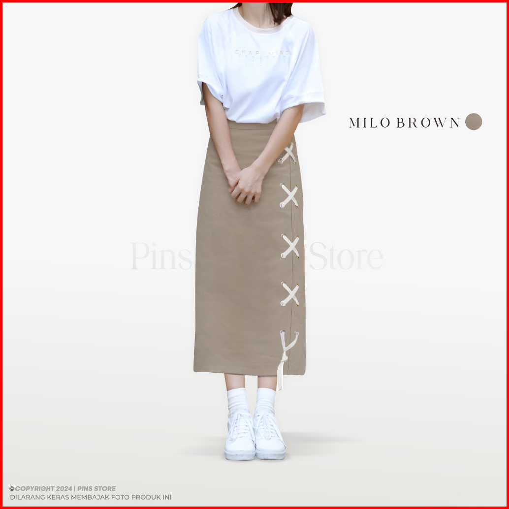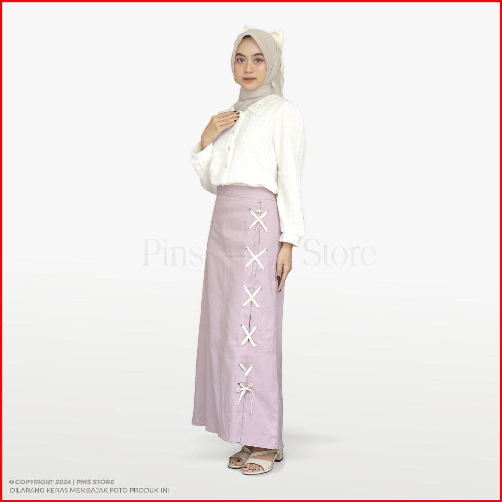 Pins Siena Skirt Model Semi A-line Rok Panjang Wanita Bawahan Maxi Dan Midi Cotton Twill Aksen Tali